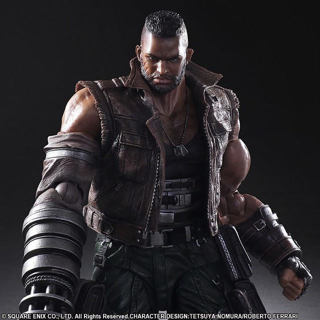 在令全球玩家引頸期盼的《Final Fantasy VII Remake》發售之前,史克威爾艾尼克斯終於推出了以新造型為基礎的「PLAY ARTS改 巴雷特·華萊士」。作品完美詮釋了更加粗獷、提格壯碩的巴雷特,毛髮與肌肉線條的表現相當真實,手臂上的刺青也忠實重現。服裝的質地真實,在皮衣上能看見粗糙的顆粒,褲子上還有細膩的皮革紋路。巴雷特的招牌武器「Gimmick Arm(ギミックアーム)」則使用霧面的金屬色塗裝,讓色彩更加協調而不搶眼。配件就附得比較少了,僅有一個左手替換手掌和可穿脫的太陽眼鏡,不過巴雷特帥成這樣,完全不影響購買意願!