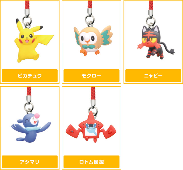 還有屬性是水可以激流操縱水氣球的「球球海獅(アシマリ)」,以及「洛托姆圖鑑(ロトム図鑑)」是寶可夢圖鑑的改進版本,正如牠的名稱"洛托姆圖鑑"是洛托姆潛入圖鑑後的型態,當然最後收錄的是超人氣「皮卡丘(ピカチュウ)」,每款都有繫繩可以吊在背包或是手機上面等等,讓你可以帶著《精靈寶可夢》一起出門,喜愛《精靈寶可夢》的玩具人可以參考一下歐!