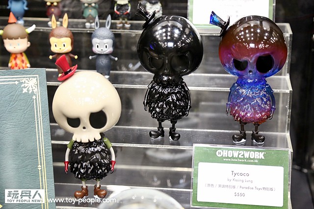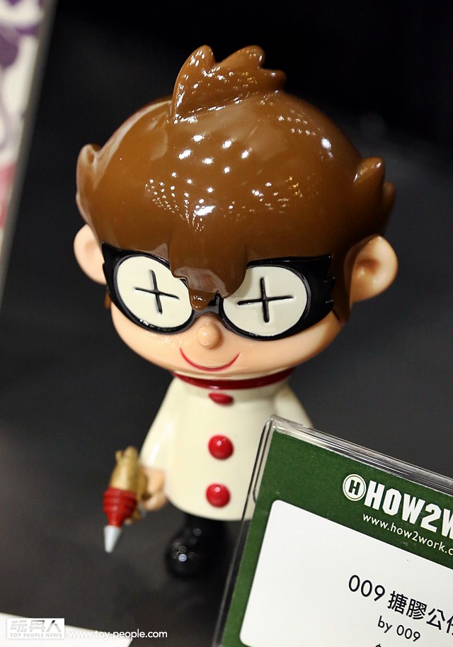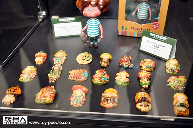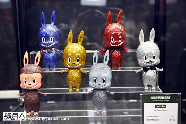 今年HOW2WORK 攤位最亮眼的作品莫過於是「小雀斑Labubu 2017 版」,除了有販售玩具之外,在攤位旁有擺放一支超巨大的小雀斑Labubu 讓各位玩具人拍照。此外,這次會場限定商品也是不可少的,包括插畫師小川老師(Kohei Ogawa)最新60 體的Naughty Boy Figure 以及多款羊毛氈材料的綠色牛園(Green cow garden)的可愛小動物。