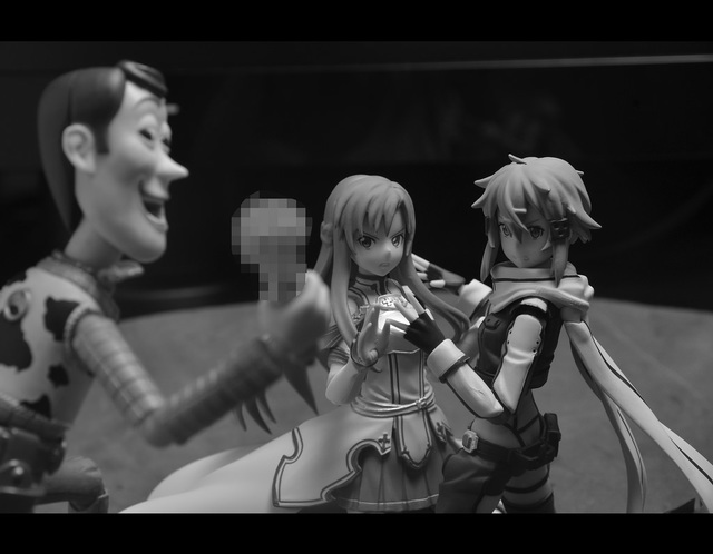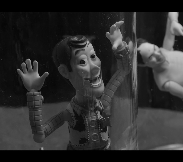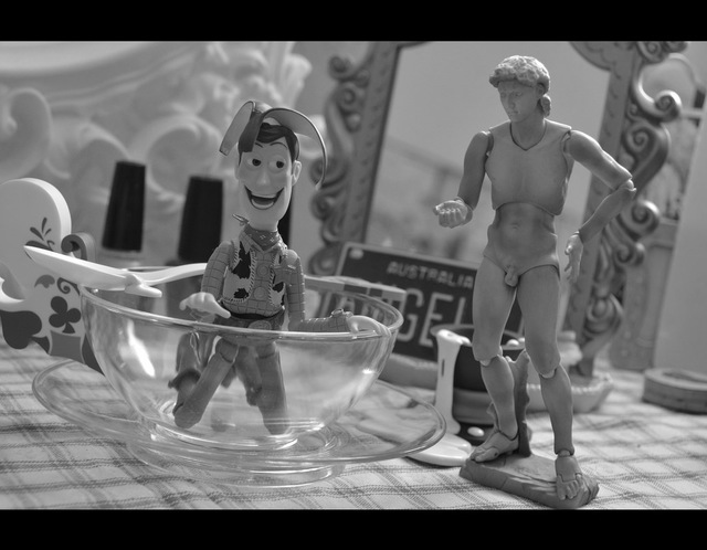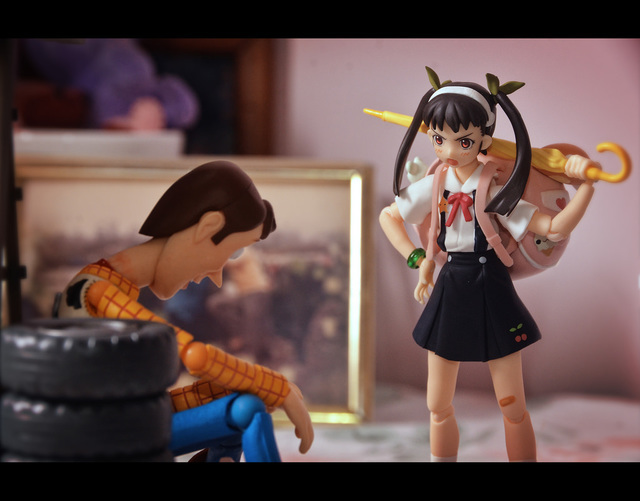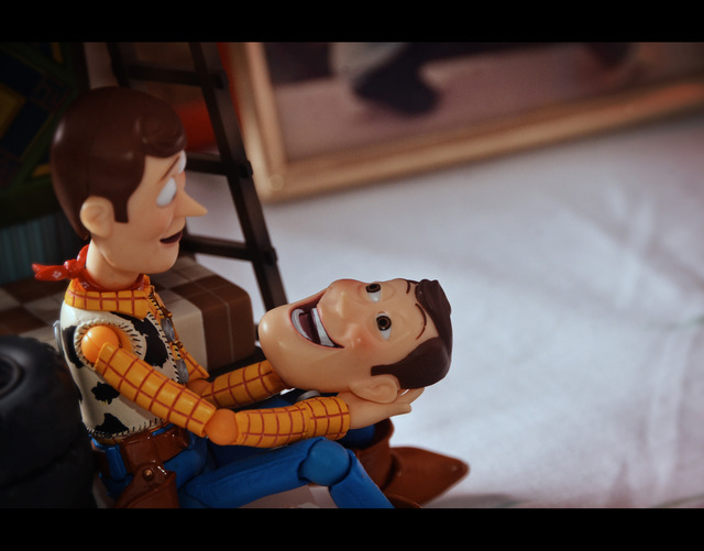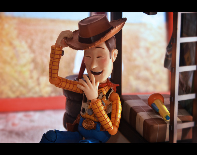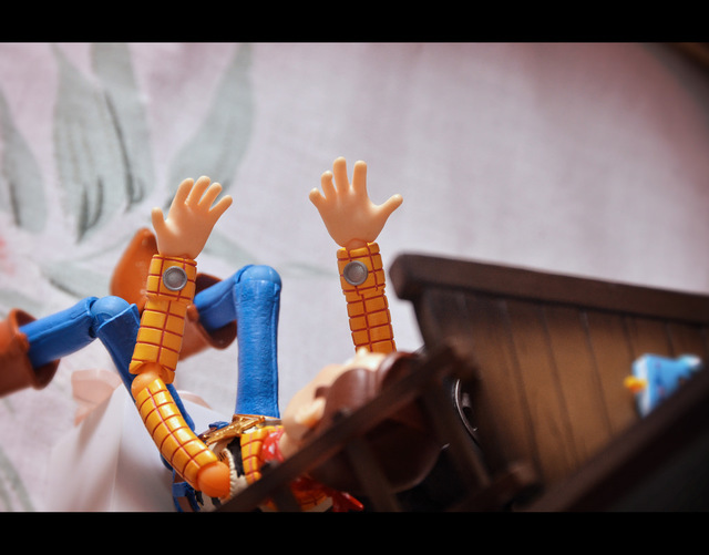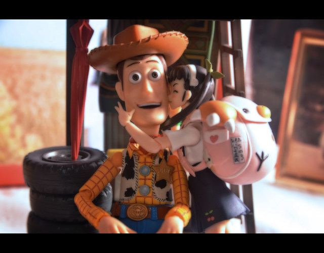 因為受某個遊戲刺激,我就很想用玩具拍個什麼,看到胡迪覺得他真的很可憐,風靡全球的一世英名就這樣敗在海洋堂手上XD同時他也算是跟我感情感最深的人偶吧,很常拿起來玩,連在我的個展都化身為作品了!