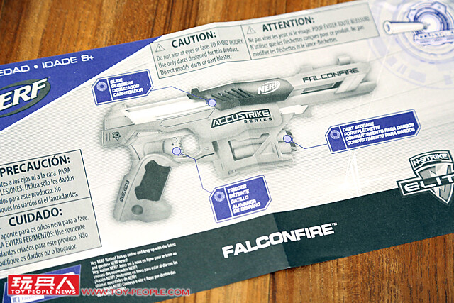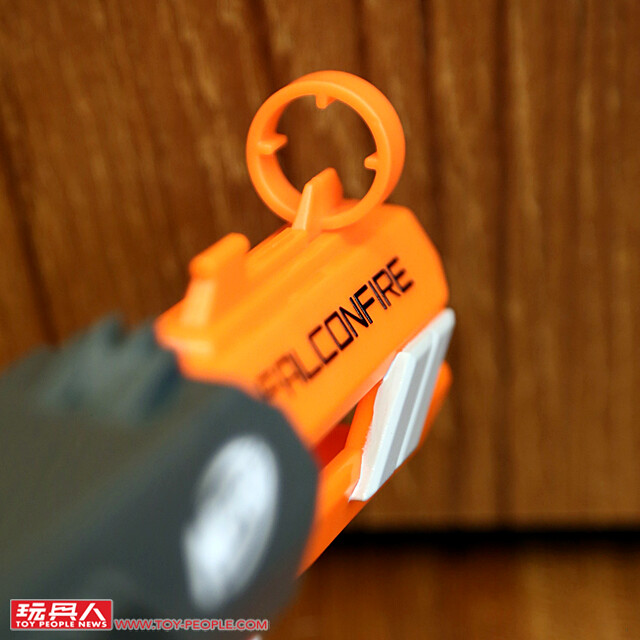 ▼ 首先來看的是基本手槍款式的「鷹隼神射(FALCONFIRE)」。 大部分的NERF槍款都設計成外露的包裝,讓各位玩具人能夠直接在現場感受實品的質感。