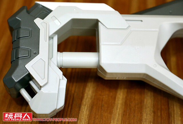 ▼ 巡弋神射本體。造形設計相當具有未來感,使用強化材質的鏤空骨架設計兼具了輕便與穩定性,發射器牢固且不易晃動。 除此之外,本體的重量也平衡的很好,就算長時間射擊把玩也不容易感到負擔,可以感受到製作團隊在造型上用盡苦心。