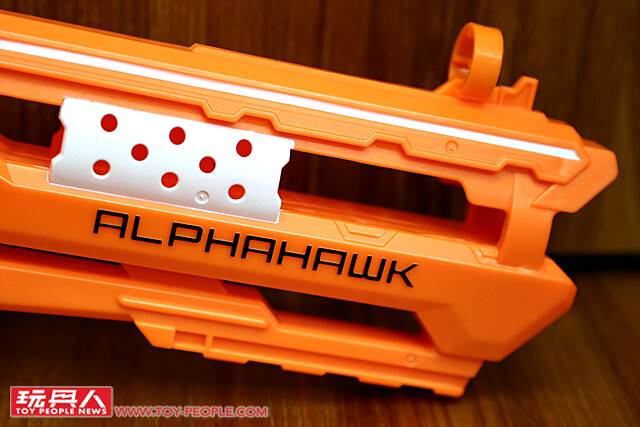 ▼ 發射器前端同樣刻印有巡弋神射(ALPHAHAWK)的名稱,鏤空設計的槍管十分特別。
