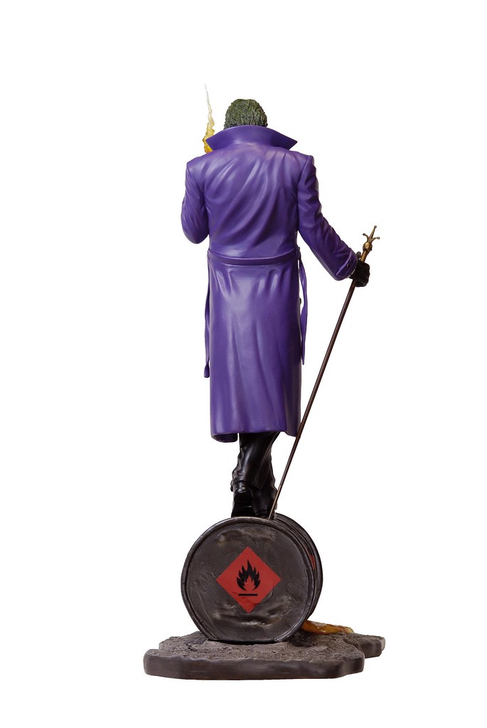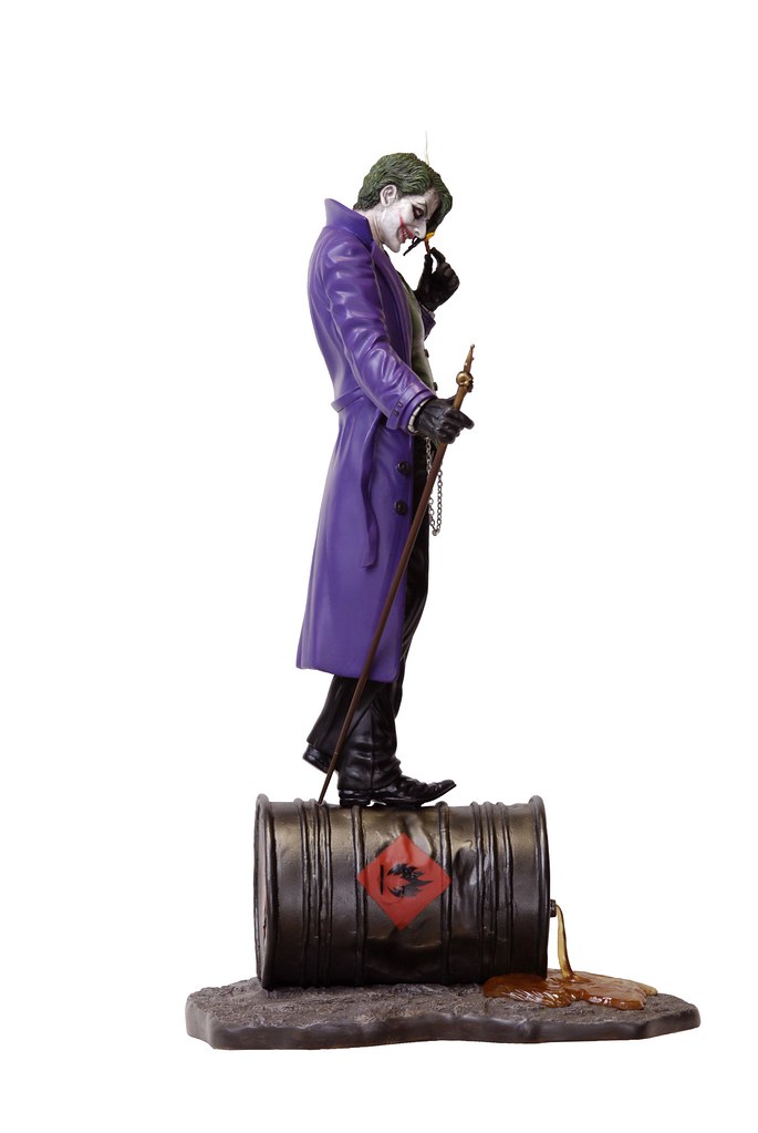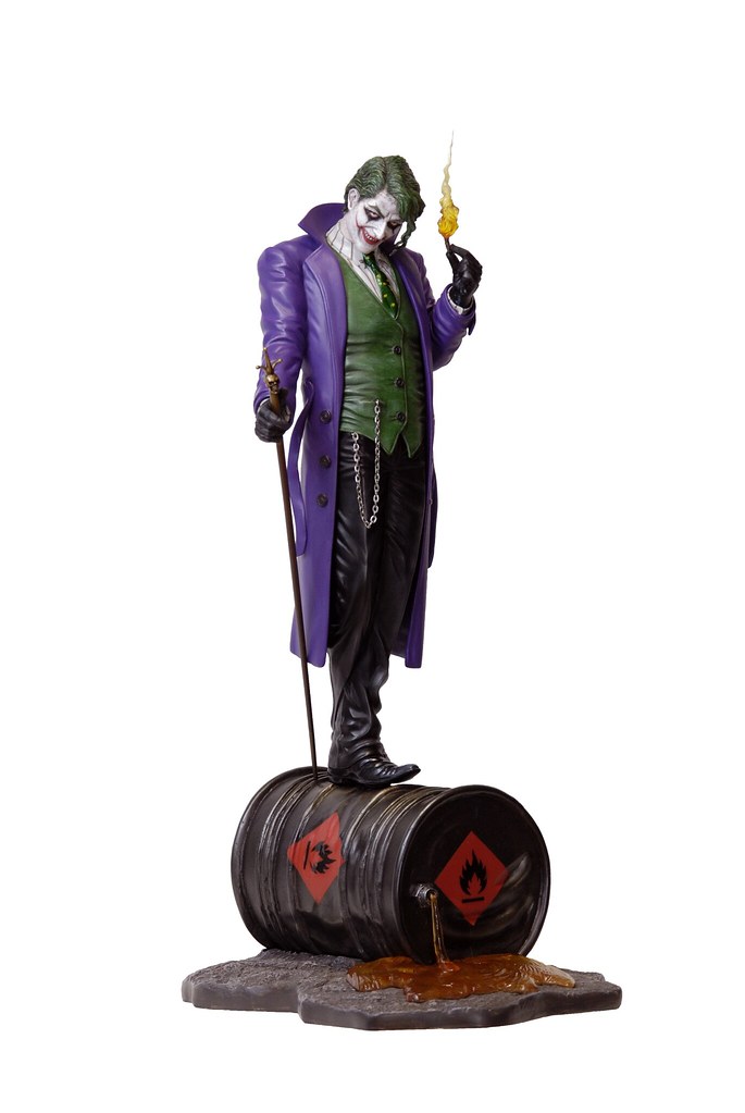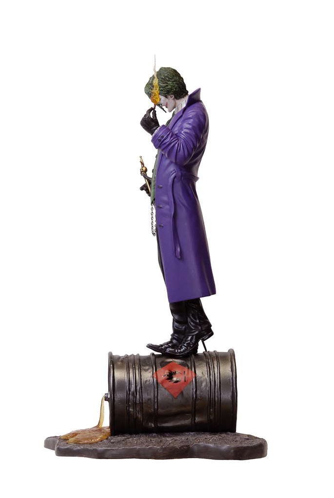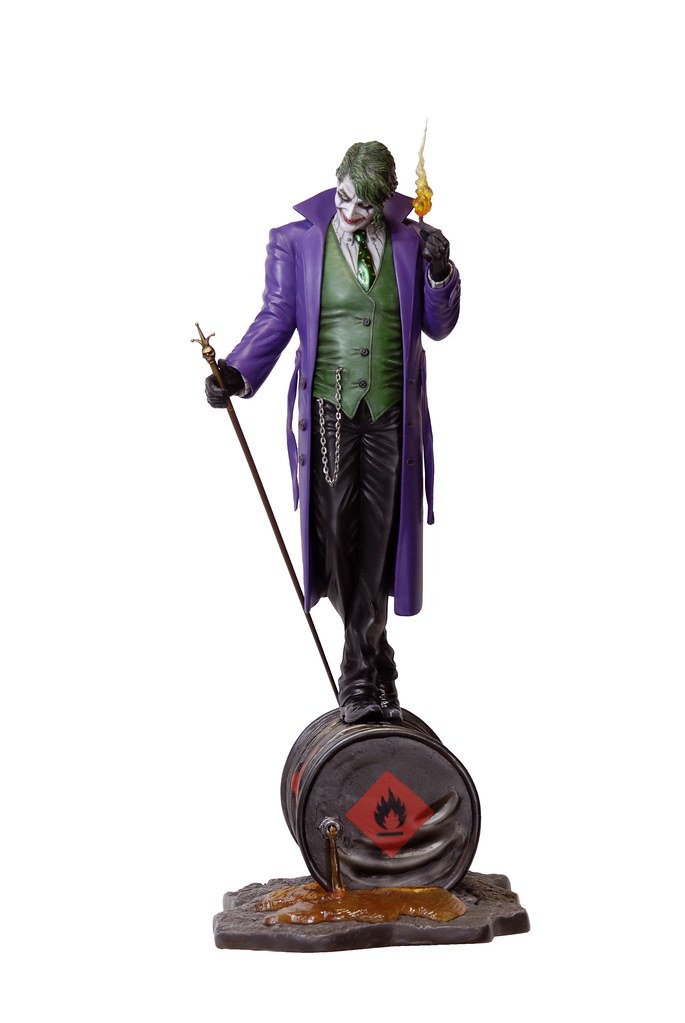這次所要推出的1/6 比例「小丑」全身雕像作品是由Micheal B Rodriguez 所負責整體作品的雕刻,而整體作品的造型設計仍是由Luis Royo 負責。值得一提的是,這次的設計可說是相當的搶眼啊!小丑站在以汽油桶為設計的地台上,搭配著流出的汽油,而其手上則是拿著起火的火柴,相當的霸氣啊!有興趣的玩具人可以收藏一下這尊小丑的雕像作品。
