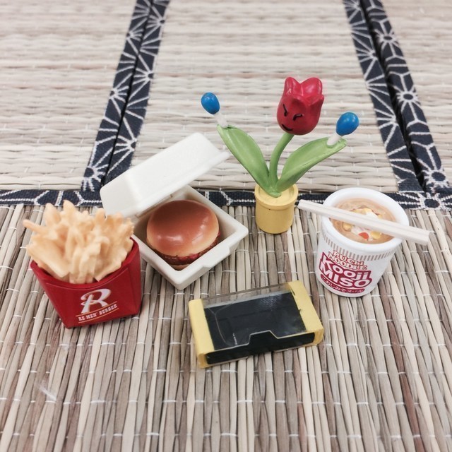 7號/ 漢堡飽和薯條, 杯麵, 錄影帶, 跳舞音樂花 (但印象中應該是太陽花啊...)