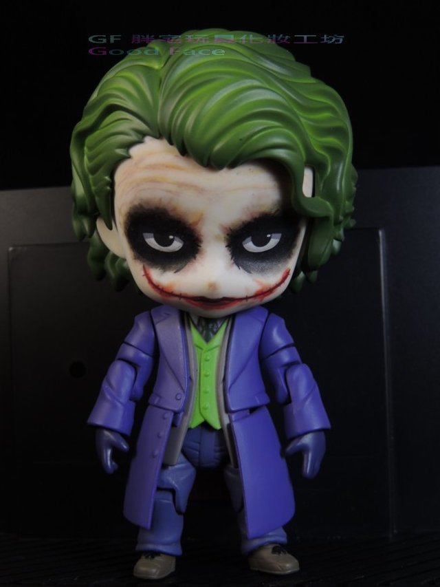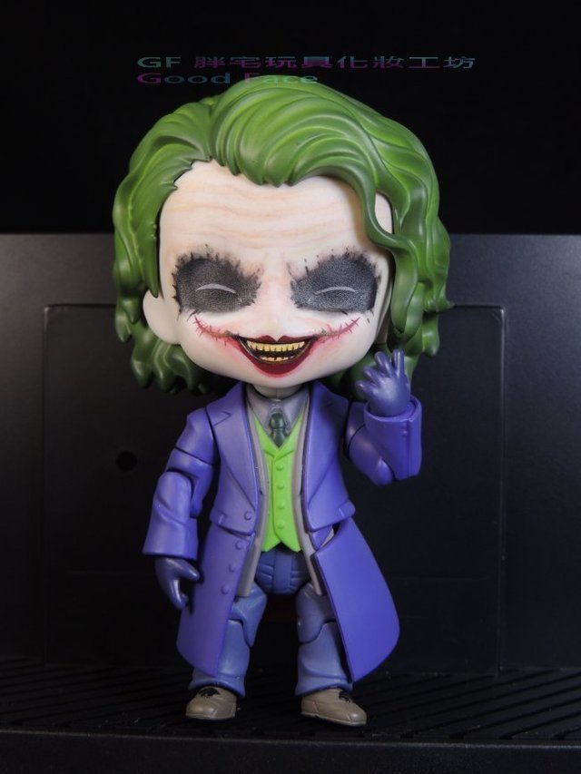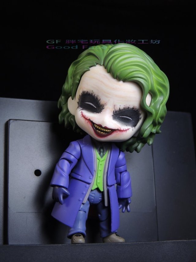 塗裝時加了皺文和肉色來做妝花掉的效果,在笑臉的部份特別參照劇照改成上下牙齒分開,並把牙齒加入黃色畫多顆一點,個人很少收黏土人(照片中那隻也是別人的委託品)主要是預算有限(錢不夠多,錢不夠多,錢不夠多),