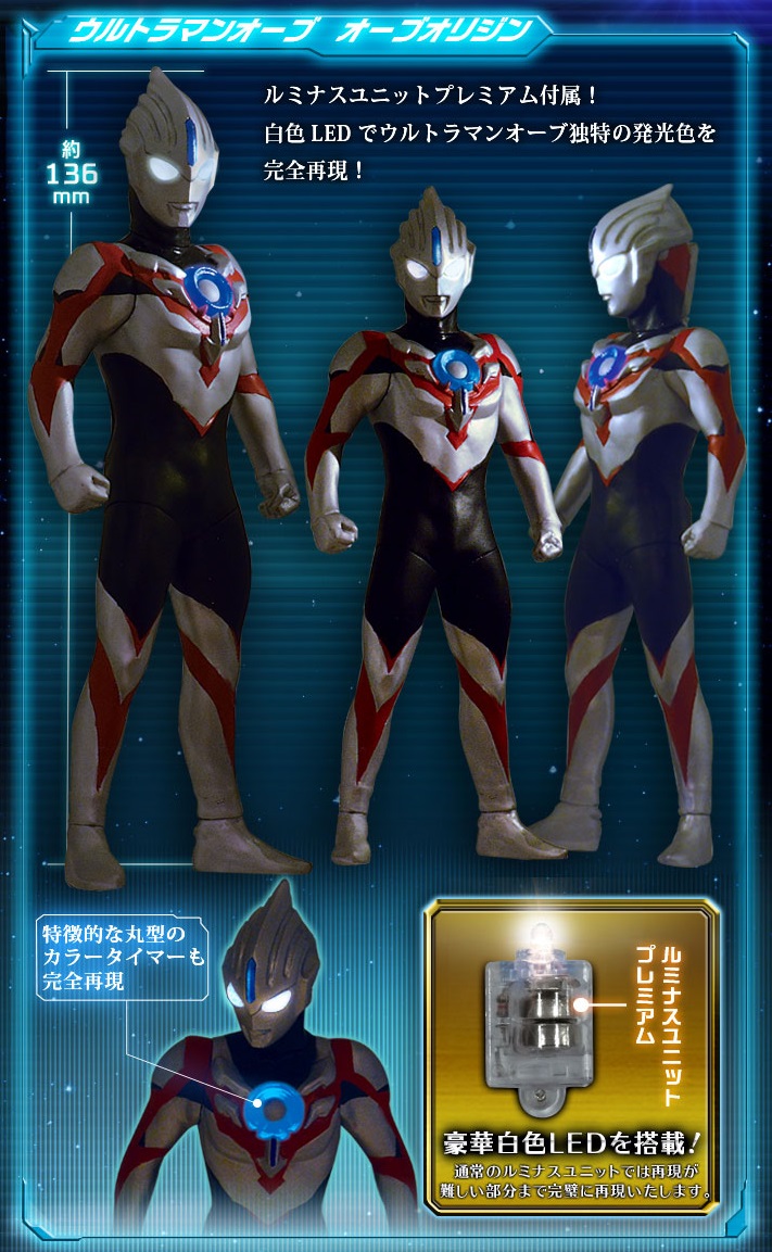 參考售價約3,580元日幣,超人力霸王Orb高約有136mm/超人力霸王蓋亞(V2)高約有121mm,預計2017年4月推出。