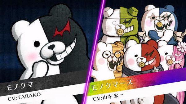 五隻黑白熊亞種組成的「黑白熊家族」團體,自稱是黑白熊的子女,長男是「黑白太郎(モノタロウ)」特徵是左半邊是紅色、「黑白粉妮(モノファニー)」則是左半邊是粉紅色的配色,左半邊是綠色則是「黑白達姆(モノダム)」另外左半邊藍色的是「黑白小子(モノキッド)」與「黑白助(モノスケ)」他左半邊是黃色的來區分每位不同的家族成員,這次將以盒玩包裝的方式來販售,喜愛《槍彈辯駁》系列的玩具人可以參考一下歐!