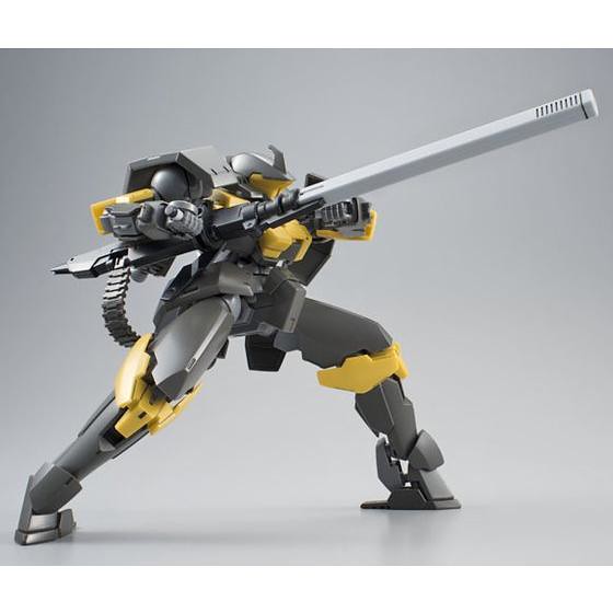 「HG 1/144 蘭吉雷兹(伊歐古座機)」使用的套件與先前發售的「蘭吉雷兹(茱麗葉座機)」大致相同,頭部多了指揮官機的天線,成形色則改成深棕色與黃色。武裝部份除了原有的步槍、格鬥手甲外,新增了伊歐古座機的主武器「長程電磁砲」,彈鏈部份以軟材質製成。搭配先前發售的「HG MA 哈斯蒙」就能重現各個名場面!