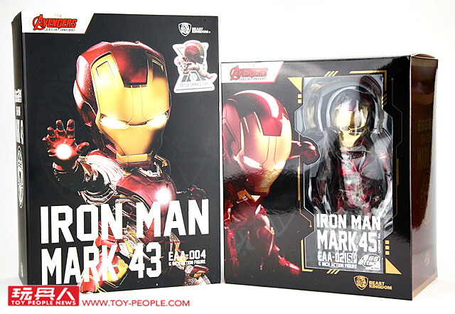 這次的兩款作品都出自於暢銷電影《復仇者聯盟2:奧創紀元》(Avengers: Age of Ultron)中。 鋼鐵人馬克43登場於片頭,復仇者聯盟協力進攻九頭蛇位於東歐國家「蘇科維亞」的最後一個科研基地的場景;而馬克45則是現身於與奧創在「蘇科維亞」的最終決戰中。 這次野獸國特別使用了舊化戰損與電鍍處理的特殊效果,呈現出與一般零售商品截然不同的獨特質感。