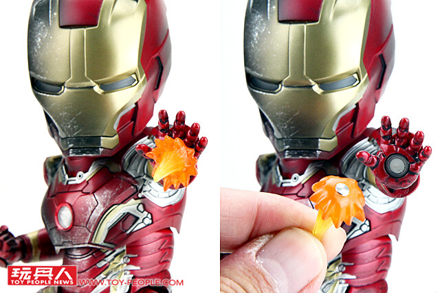 ▼ 野獸國所發行的鋼鐵人,還有一個很棒的設計,那就是掌心、腳底的部位內藏磁石,如此一來就能在不破壞造型之下使用攻擊特效零件,超讚!