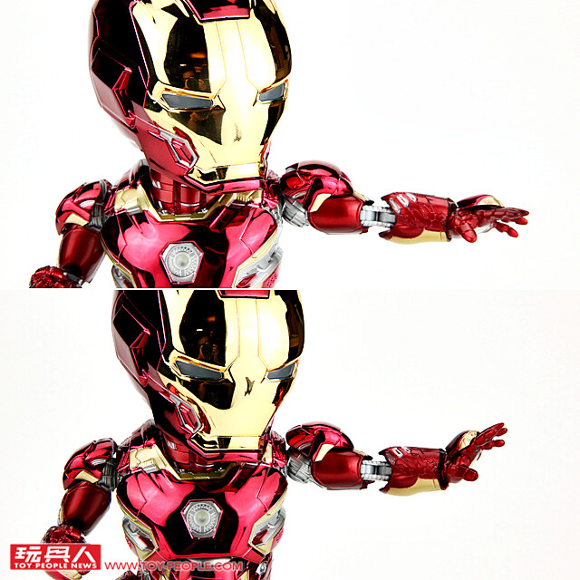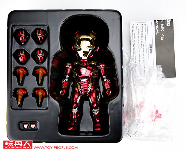 ▼ 接下來讓我們看看鋼鐵人馬克45! 馬克45的包裝採用的是新式設計,並特別使用了亮面材質的紙張,強調了電鍍的閃亮質感。 另外,透明窗型上的印刷效果也讓整體的視覺效果看起來更棒!