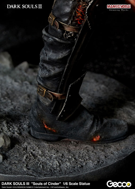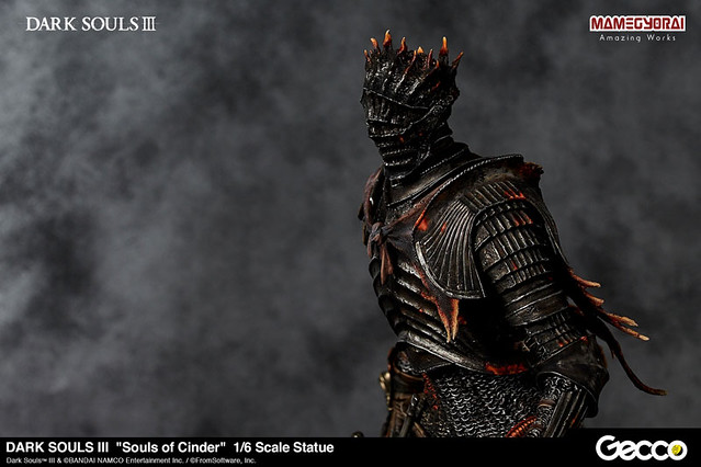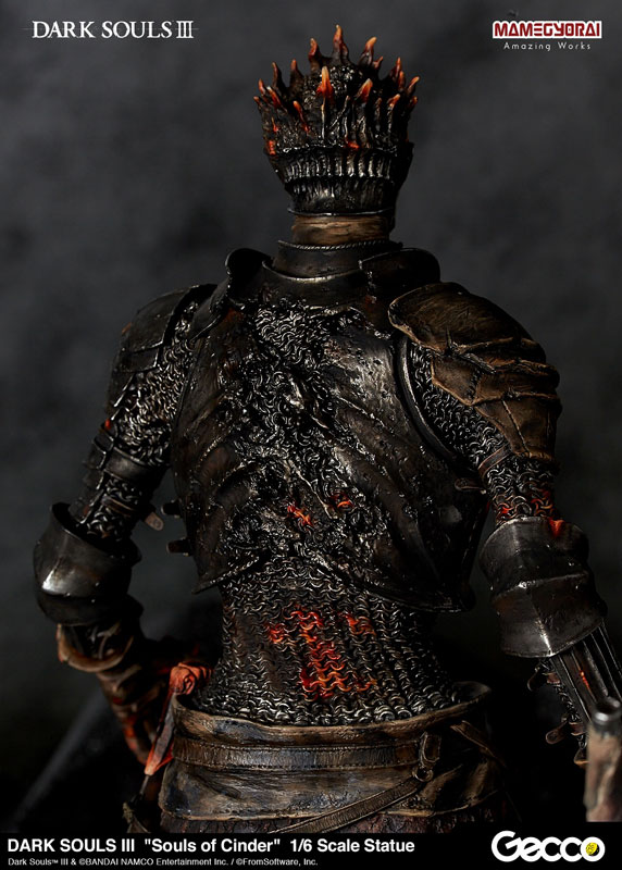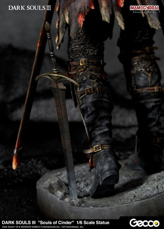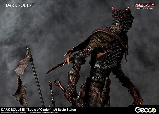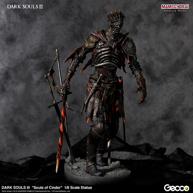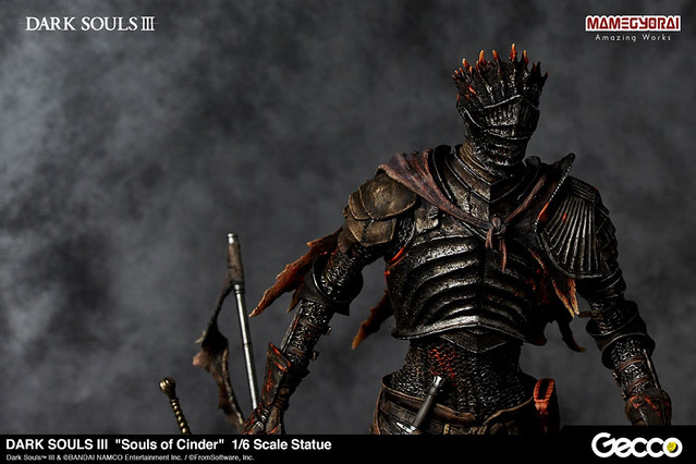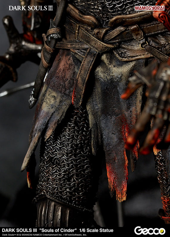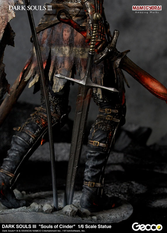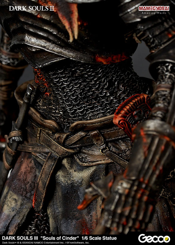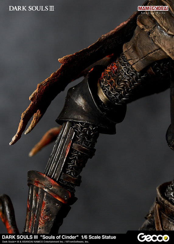 Gecco推出的「薪王們的化身」由From Software的設計團隊完全監修,身上的皮革、布料、金屬都打造出相當真實的質地,而且上頭的細節例如污漬、傷痕、補丁都非常精緻,連鎖子甲都是環環相扣編織上去的。燃燒的部份則用一系列的暖色系表現,不但具有層次,連燒焦、熔化的效果都完美呈現。底座則重現了遊戲中的戰鬥場景:砂石地上插滿了數百把劍,薪王們的化身發現你後,緩緩地朝你走了過來...。預約特典則贈送1/1大小的遊戲道具「餘火」,並附有磁吸式專用臺座能夠單獨展示。