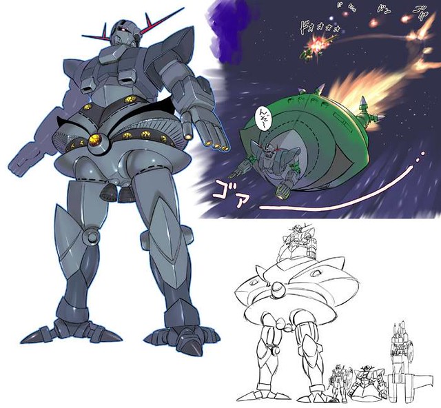 富野由悠季監督的另一部作品《鋼彈Reconguista in G》,風格上延續了《∀鋼彈》的未來感,機體設計上非常有態度。