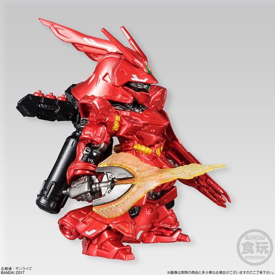 日BANDAI萬代玩具公司相當受歡迎的FW GUNDAM CONVERGE食玩商品系列,這次將以更細緻造型與塗裝的特別彈「FW GUNDAM CONVERGE:CORE」來推出V剛彈與沙薩比的「金屬配色版本」ニューガンダム&サザビー(メタリックver.)(名稱暫譯),這次是以《機動戰士鋼彈:逆襲的夏亞》當中所登場宿敵的兩位角色人物"阿姆羅·雷"所駕駛的「ν 鋼彈(ν是希臘文第12個字母的小寫,讀音為:Nu)」和"夏亞·阿茲納布爾"駕駛的紅色「沙薩比」來再次推出其特別的金屬配色。