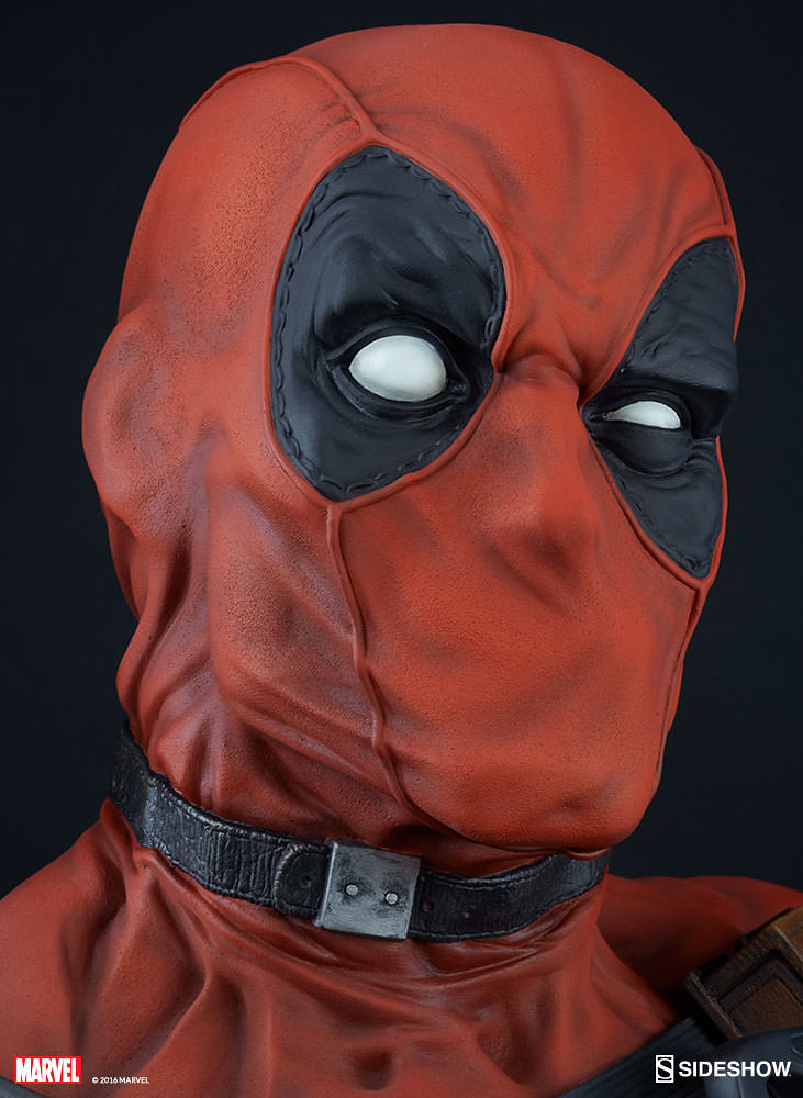 Sideshow Collectibles 公司繼日在其旗下最高水準的Premium Format™ Figure 系列推出1/4 比例的「死侍時間靜止中」(Deadpool Heat-Seeker)雕像作品之後,又將要推出一款1:1 真人比例自拍好搭檔惡棍英雄「死侍」韋德.威爾森半身雕像作品。
