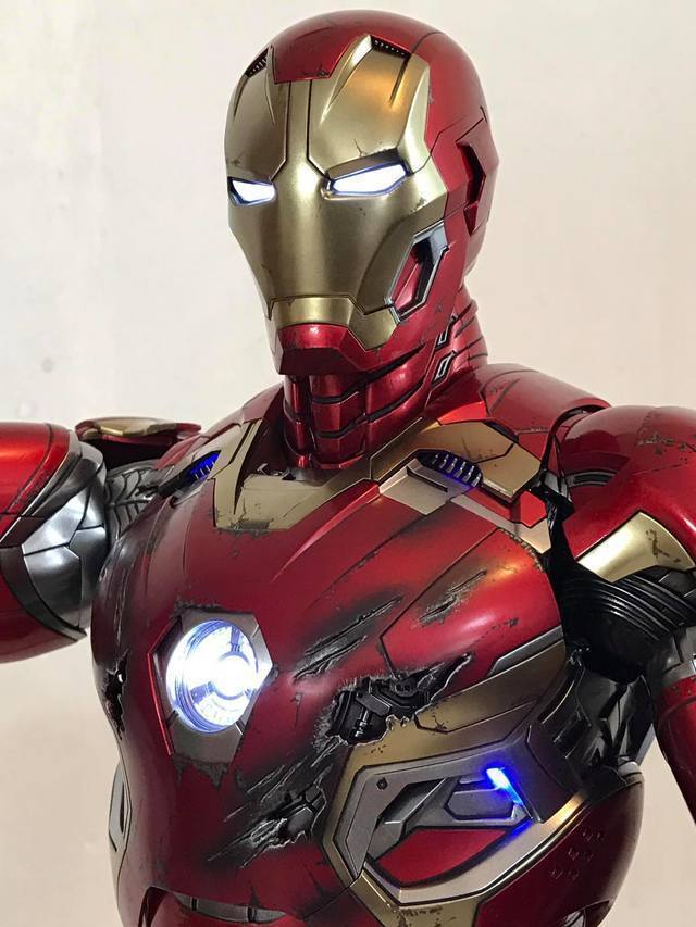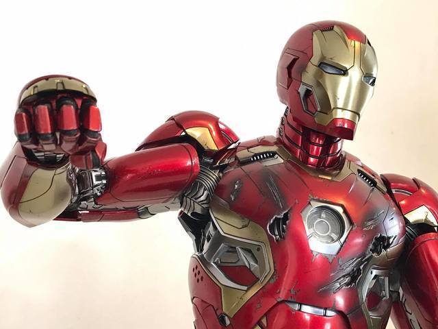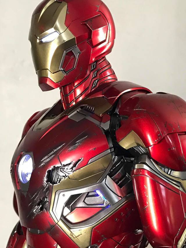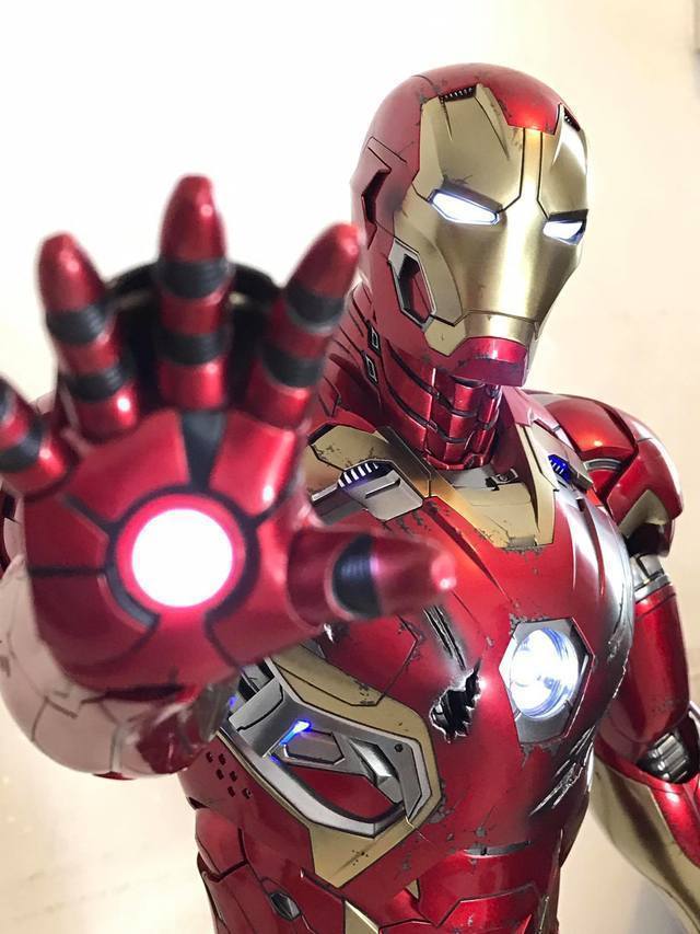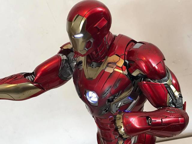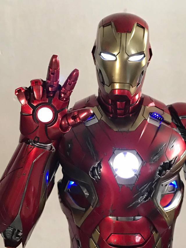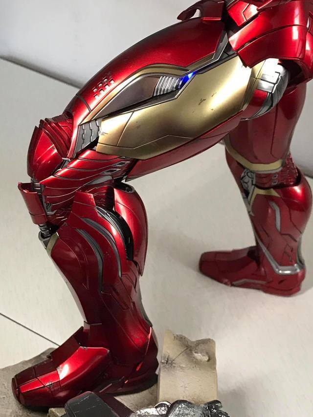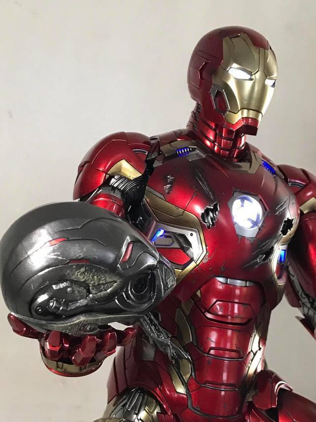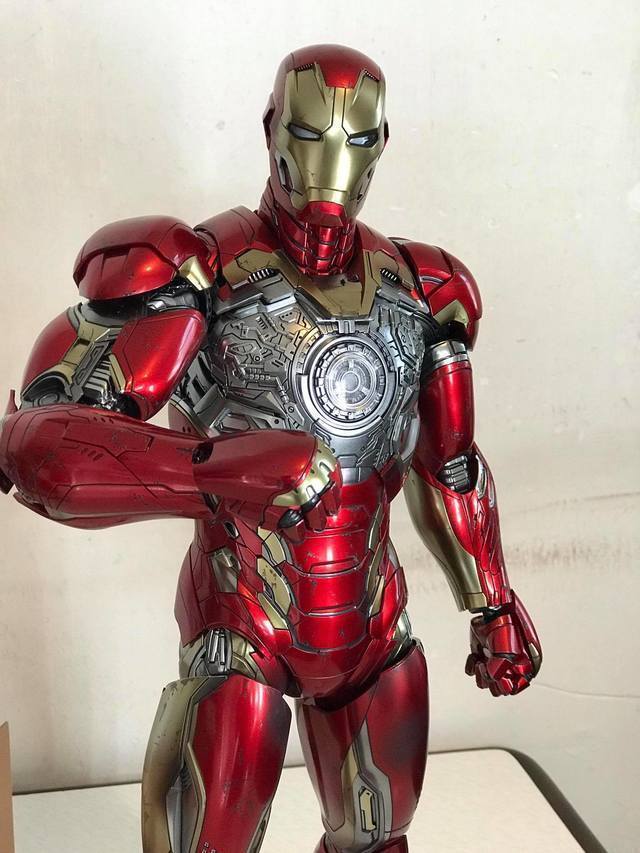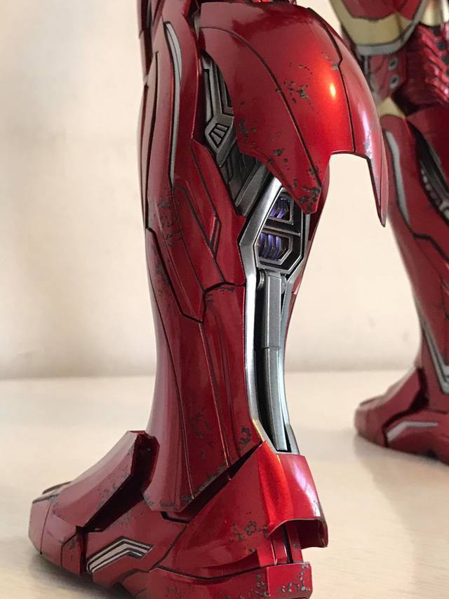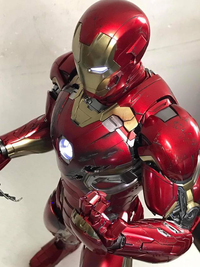 多謝網友的劣評令我可以低價入手神物,如果另購頭雕就完美了。本人十分懷疑一些香港朋友根本沒有上專門店見過實物,1/6 與 1/4 細緻度相差甚遠,根本不是放大版吧。可動甲令可動性增加又比較有特色,戰損塗裝更多更自然,戰損胸甲的顏色終於與身體色調一致,身型粗壯,十分有肌肉感!最重要是肩膊的銀色球形關節被肩甲完美隱藏左,比1/6 45進步不少。HT 1/4 鋼鐵人mark 45是機械與肌肉的完美結合。燈十分多,安裝電池時間需要多於半小時,與HT 1/4 鋼鐵人43應該差不多吧。關節易扭又放心,質量監控不錯。鋼鐵人45的愛好者應該會很滿意這次HT的出品。誠言這次出品不及QS005的驚喜,但作為1/4的作品他的質素是絕對不錯。本人曾擁有HT 1/6 鋼鐵人45,引用網友一句:如果1/6跟1/4 45一模一樣,相信大部分人會選擇1/6的45。非常推薦這件玩具給喜愛鋼鐵人45或未曾接觸HT 1/4 的朋友