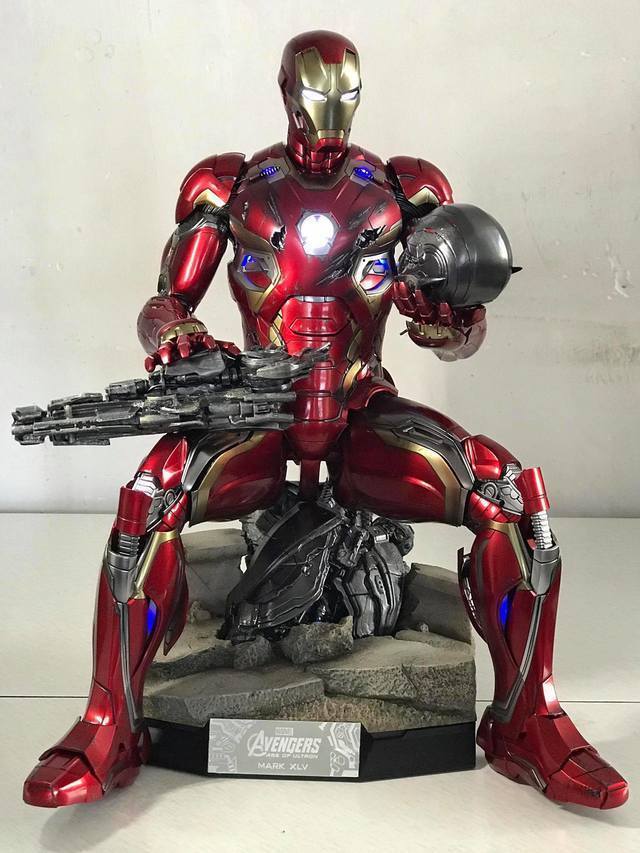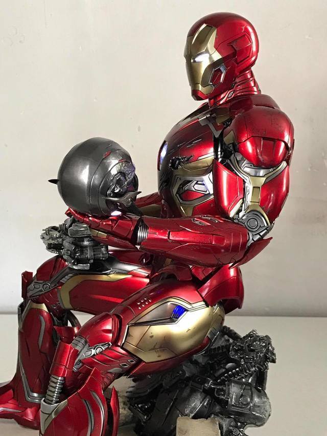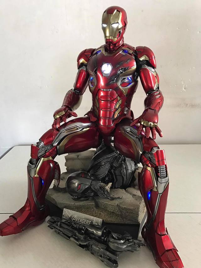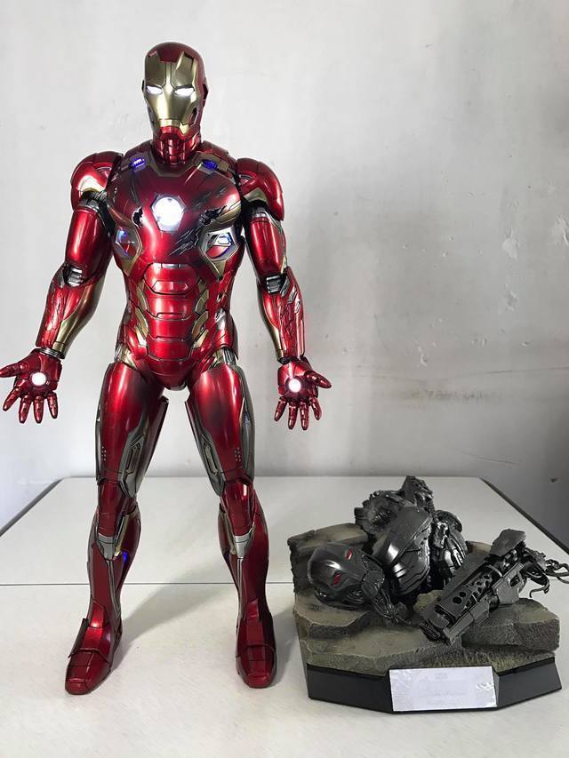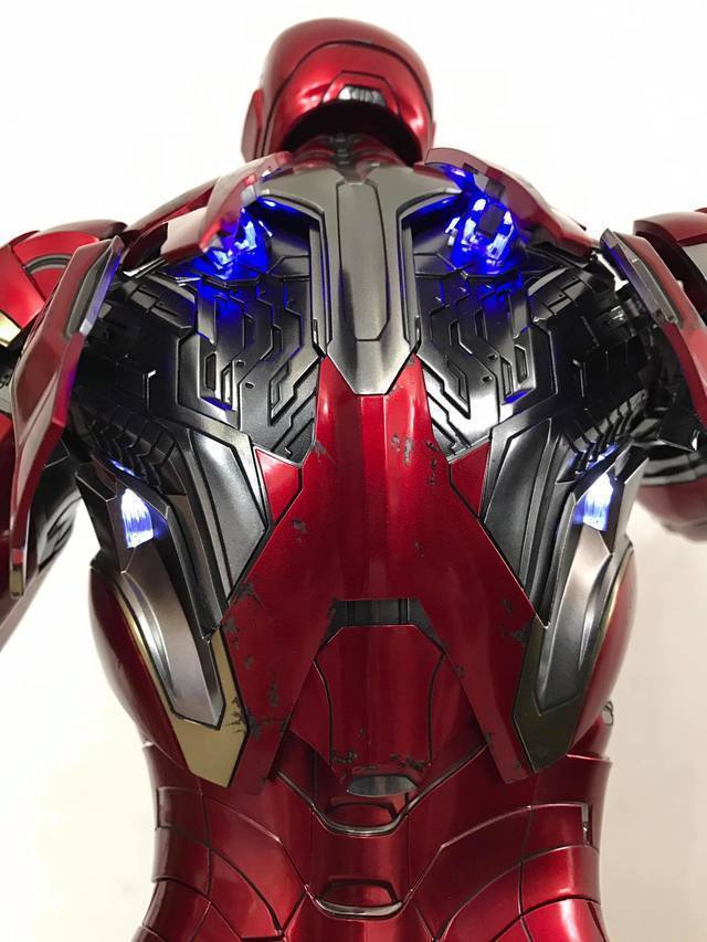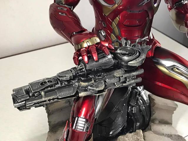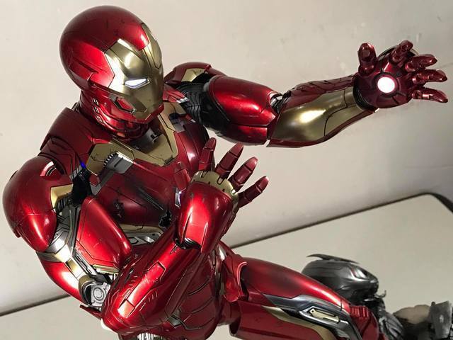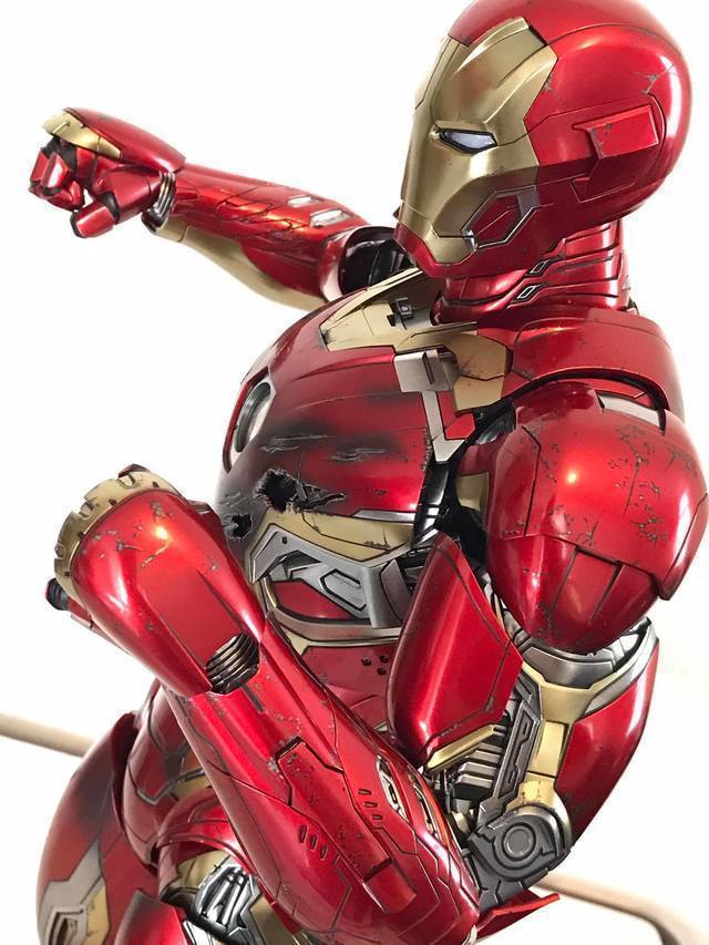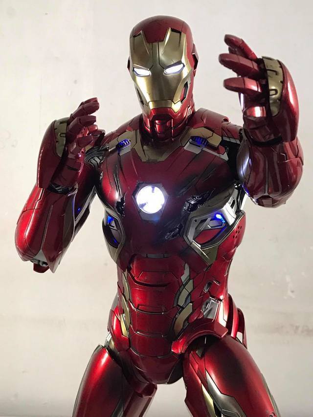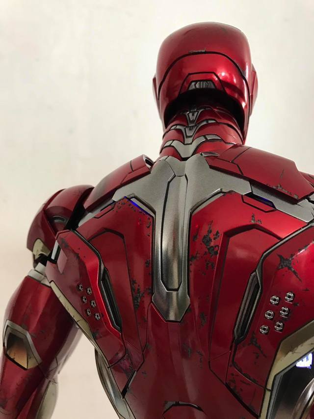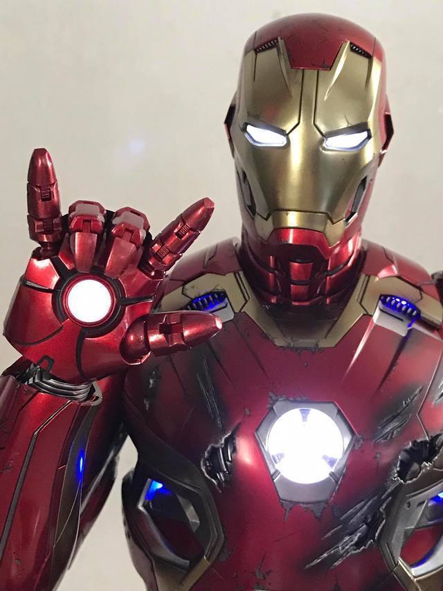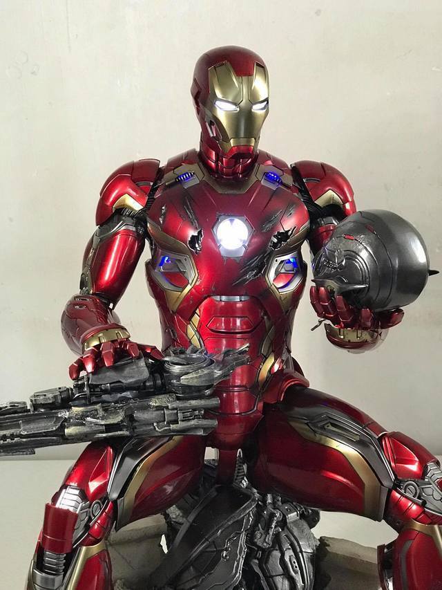 多謝網友的劣評令我可以低價入手神物,如果另購頭雕就完美了。本人十分懷疑一些香港朋友根本沒有上專門店見過實物,1/6 與 1/4 細緻度相差甚遠,根本不是放大版吧。可動甲令可動性增加又比較有特色,戰損塗裝更多更自然,戰損胸甲的顏色終於與身體色調一致,身型粗壯,十分有肌肉感!最重要是肩膊的銀色球形關節被肩甲完美隱藏左,比1/6 45進步不少。HT 1/4 鋼鐵人mark 45是機械與肌肉的完美結合。燈十分多,安裝電池時間需要多於半小時,與HT 1/4 鋼鐵人43應該差不多吧。關節易扭又放心,質量監控不錯。鋼鐵人45的愛好者應該會很滿意這次HT的出品。誠言這次出品不及QS005的驚喜,但作為1/4的作品他的質素是絕對不錯。本人曾擁有HT 1/6 鋼鐵人45,引用網友一句:如果1/6跟1/4 45一模一樣,相信大部分人會選擇1/6的45。非常推薦這件玩具給喜愛鋼鐵人45或未曾接觸HT 1/4 的朋友