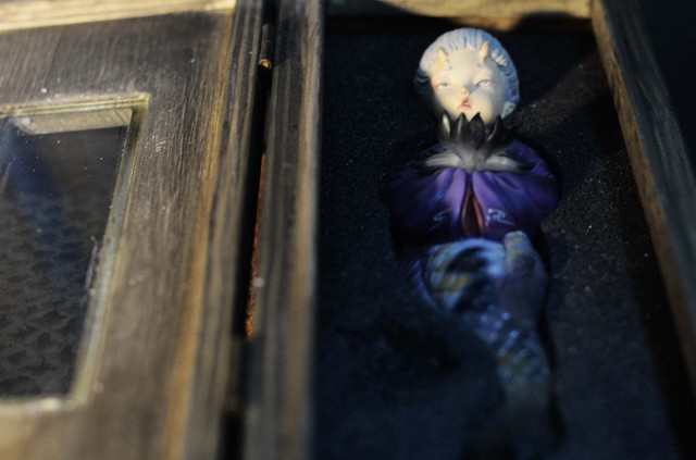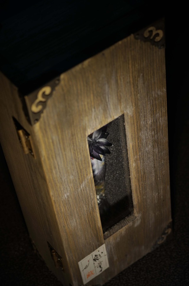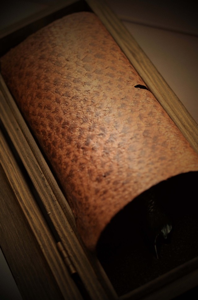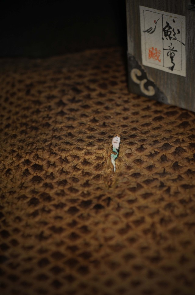 該款作品被末那定義為高端作品,所有的塗裝均按照定制塗裝級別去處理,全部經過末那塗壯師之手。為了凸顯出該款的品質與地位,還額外附送了魚皮一張(真的是魚皮!紋路細節非常贊)木盒一個(既可以當收納盒又可以當展示盒)。不管你是將這款作品拿出來放在魚皮上單獨擺放,還是直接放在木盒子裏,一種濃濃的藝術氣息撲面而來,讓你感覺這並非是簡單的手辦,而是一個精美的藝術品。