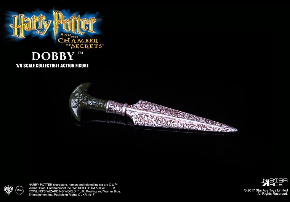 而這次Star Ace Toys 所要推出的「多比」作品也附上了許多的配件,包括哈利波特的灰色襪子(Grey Sock)、湯姆.瑞斗的日記(Tom Riddle's Diary)、蛇妖的毒牙(Basilisk Tooth)、貝拉.雷斯壯的匕首(Bellatrix Lestrange Dagger)。喜愛哈利波特的玩具人不要錯過這個難得的角色囉。