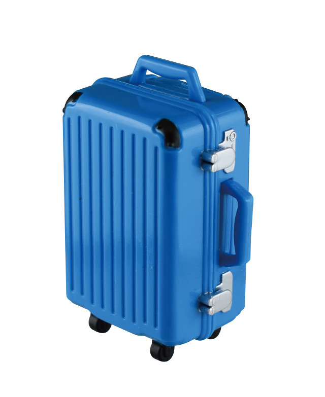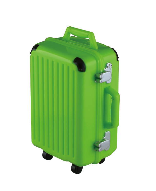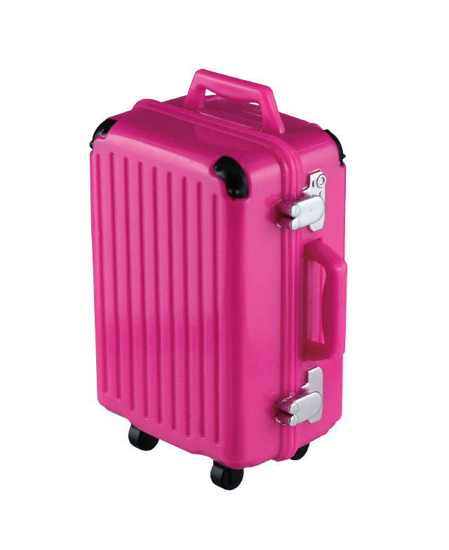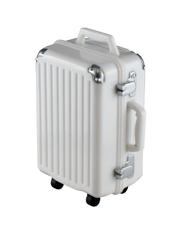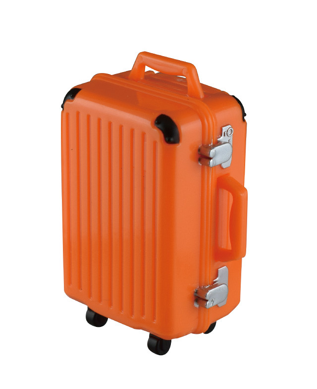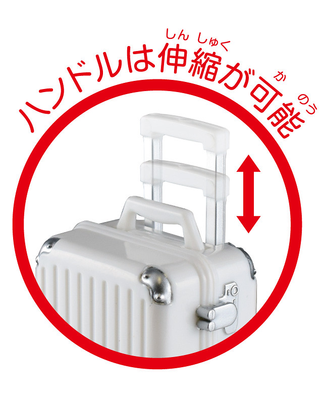 這次所要推出的「行李箱」共有白色、粉紅色、綠色、藍色以及橘色五種不同顏色的款式可以選擇,值得一提的是,行李箱除了可以打開之外,在握桿的部分還可以伸縮喔!只差把旅行組放進行李箱就可以出門啦;有收藏「誰得?!俺得!!」這系列作品的玩具人不要錯過了。
