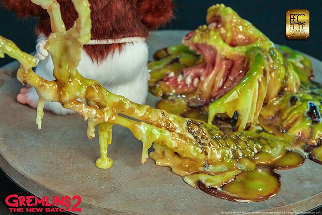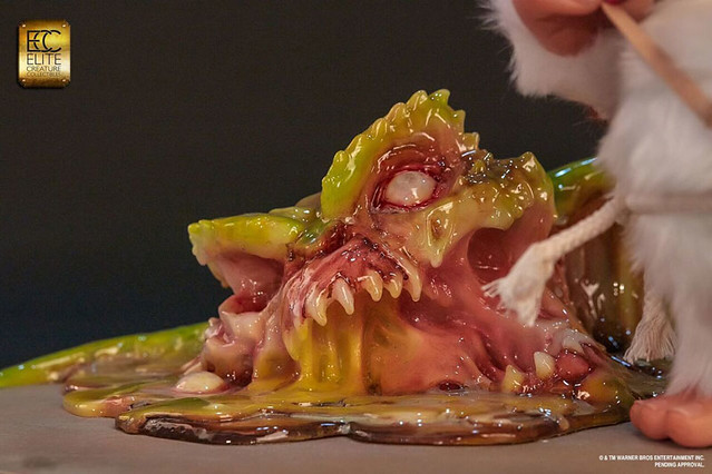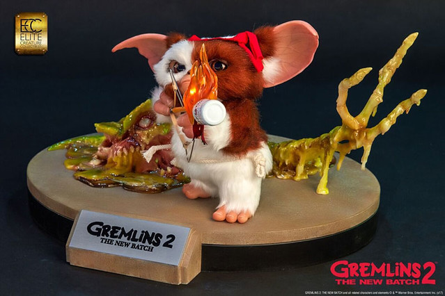 由電影特校大師“王孫杰”所組成的“ECC”(Elite Creature Collectibles) 高端蒐藏品牌,之前才公開過超級精彩的「《MIB 星際戰警》章圖‧羅森堡 1:1 複製胸像」作品,這次立體作品的小精靈身上有著柔軟的毛髮,附有一個有融化模樣的邪惡小精靈「魔怪(Mohawk)」的特殊底座和有著"Gremlins 2: The New Batch"電影英文名稱的名牌。