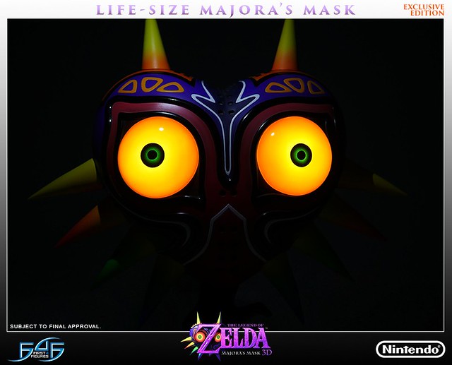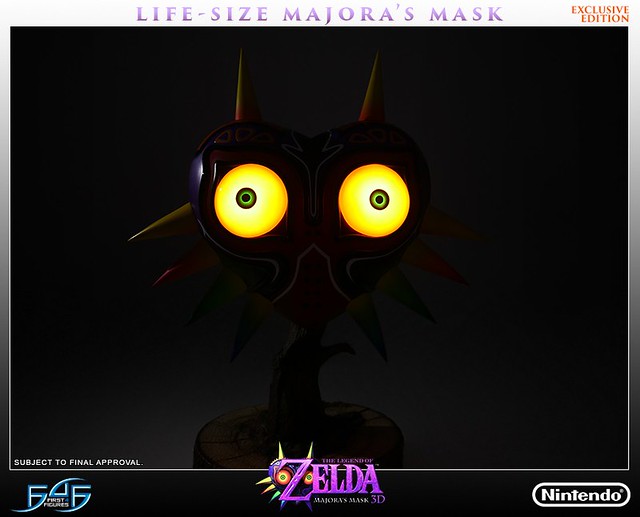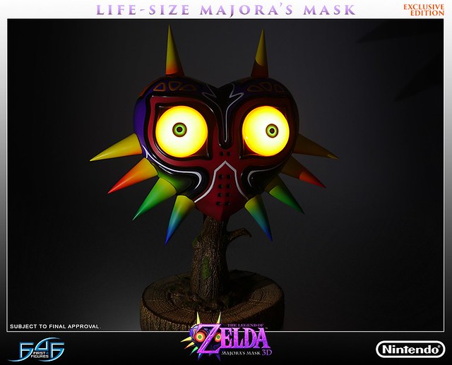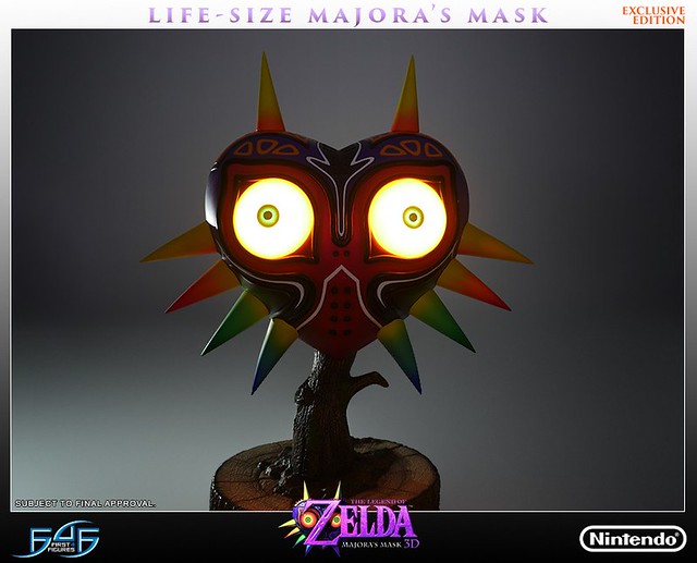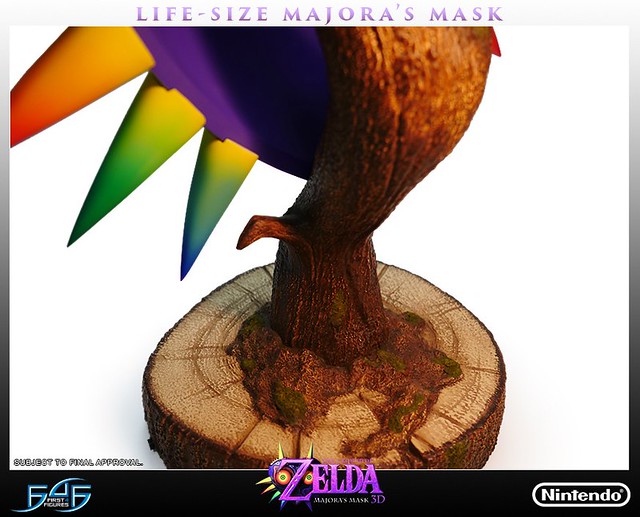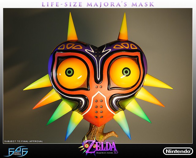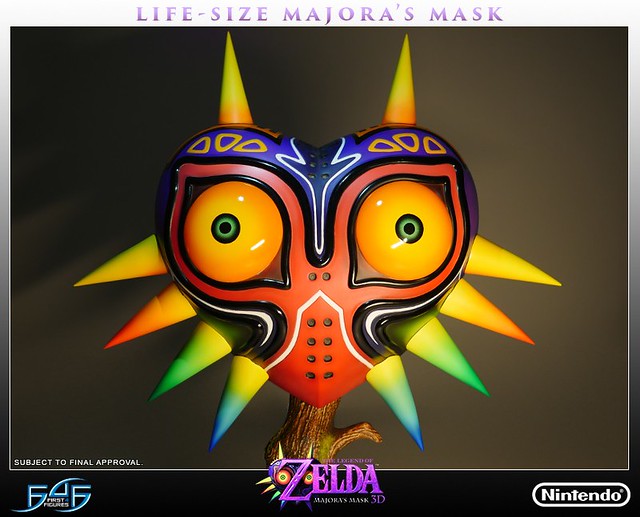 First 4 Figures推出的「穆修拉假面」以真實比例打造,表面複雜的紋路以及危險的鮮艷色彩也都完整重現。面具的內部使用紫色塗裝,並且固定在原木造型的支架上,樹皮的紋理表現非常真實,若是面具本體能帶有陳舊感,更能表現古老與神秘的氛圍。在豪華版中,穆修拉假面的雙眼內藏有LED模組,在黑暗中被那雙魔性的大眼瞪著,讓人不寒而慄。