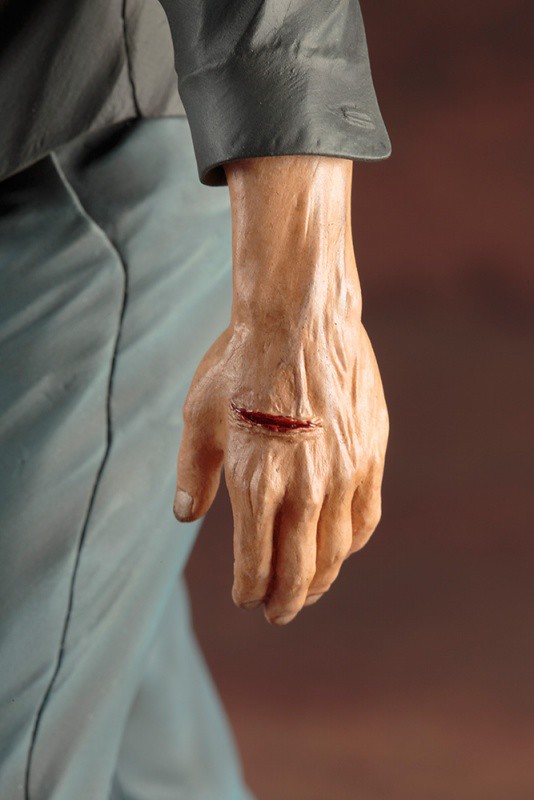 這次要推出的面具殺人魔「傑森」是出自於1980 年的驚悚片「十三號星期五」(Friday the 13th),其帶在頭上的標誌性的面具也成為其經典的象徵!當然,斧頭與大砍刀也是傑森的標誌,而這兩款武器的可替換配件這次也都有附上喔!