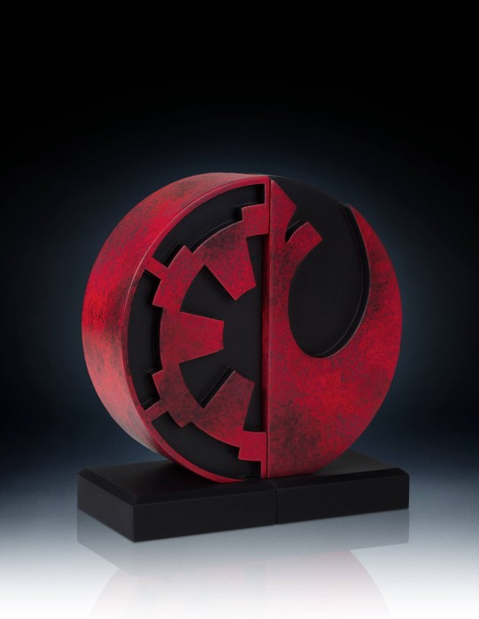 歐美玩具品牌Gentle Giant 公司繼推出了「賈霸宮殿場景組」與「AT-AT 場景組」的造型書檔之後,這次,Gentle Giant 要為各位玩具人送上史上最具衝突性的「帝國軍vs. 反抗軍標誌造型書擋」(Imperial / Rebel Bookends)。
