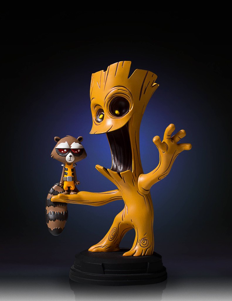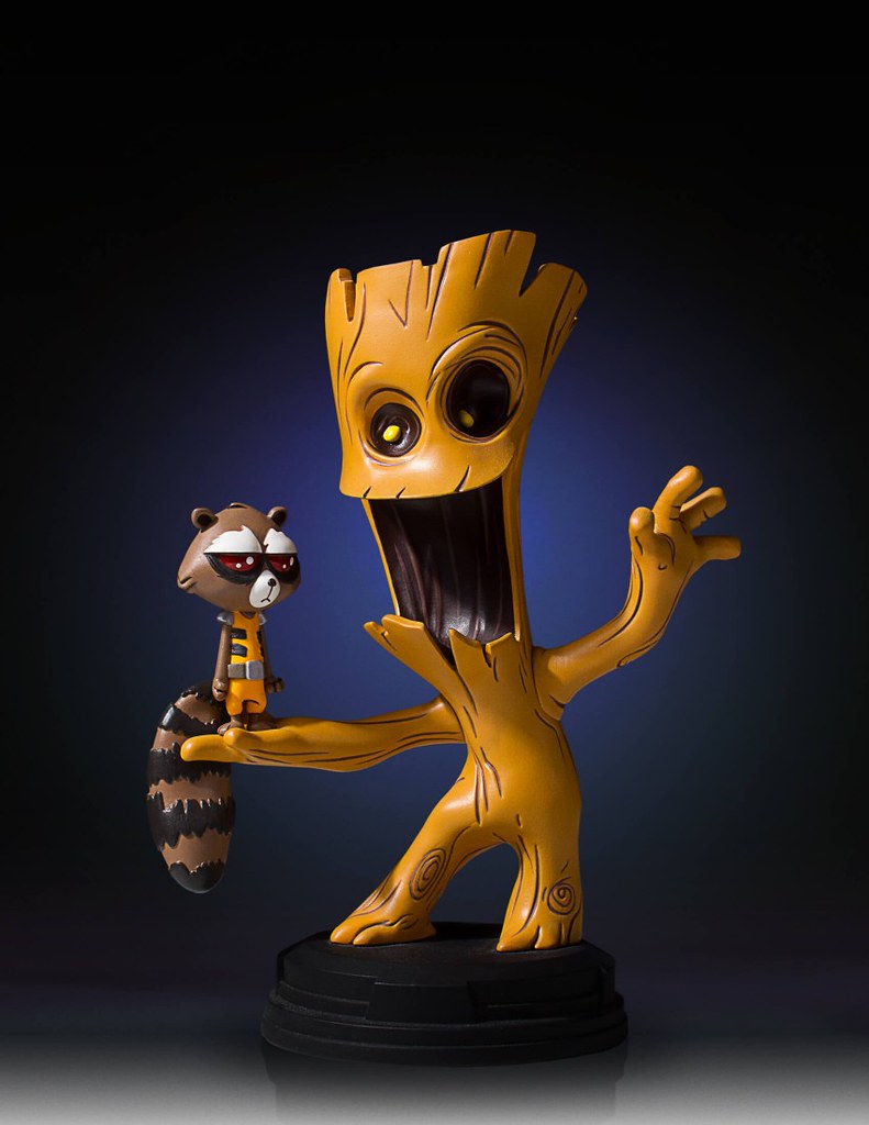 繼推出了漫畫風格強烈的鋼鐵人、美國隊長、死侍、星爵等Q 版人偶作品之後,Gentle Giant 公司又將推出最新的星際異攻隊「樹人格魯特、火箭浣熊」(Groot and Rocket)的全身雕像作品,可愛的風格搭配誇張的表情實在是太歡樂啦!喜愛Q 版風格超級英雄的玩具人別錯過囉。
