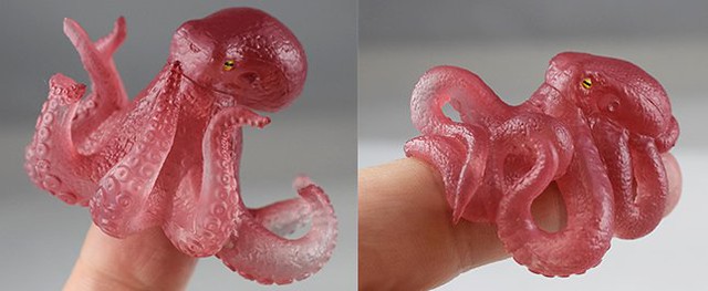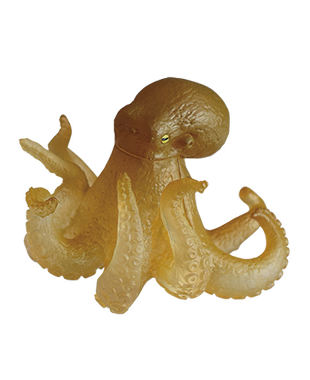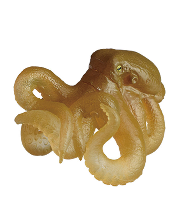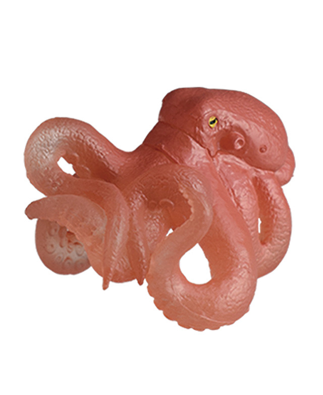 這次也是以透明材質來表現水中動物章魚的八爪腕足上,「章魚」也有稱為"八爪魚"、"八帶蛸"等等不一樣的名稱,是屬於軟體動物門頭足綱八腕目,章魚有著特殊的八個腕足,腕足上有許多大大小小的吸盤,遇到敵人或是有危機的時候會噴出黑色的墨汁來幫助逃跑,喜愛"指上系列"轉蛋商品的玩具人可以參考一下歐!