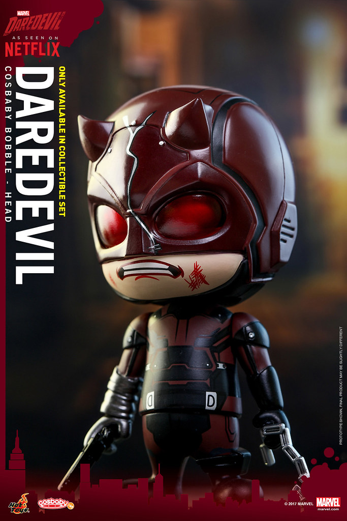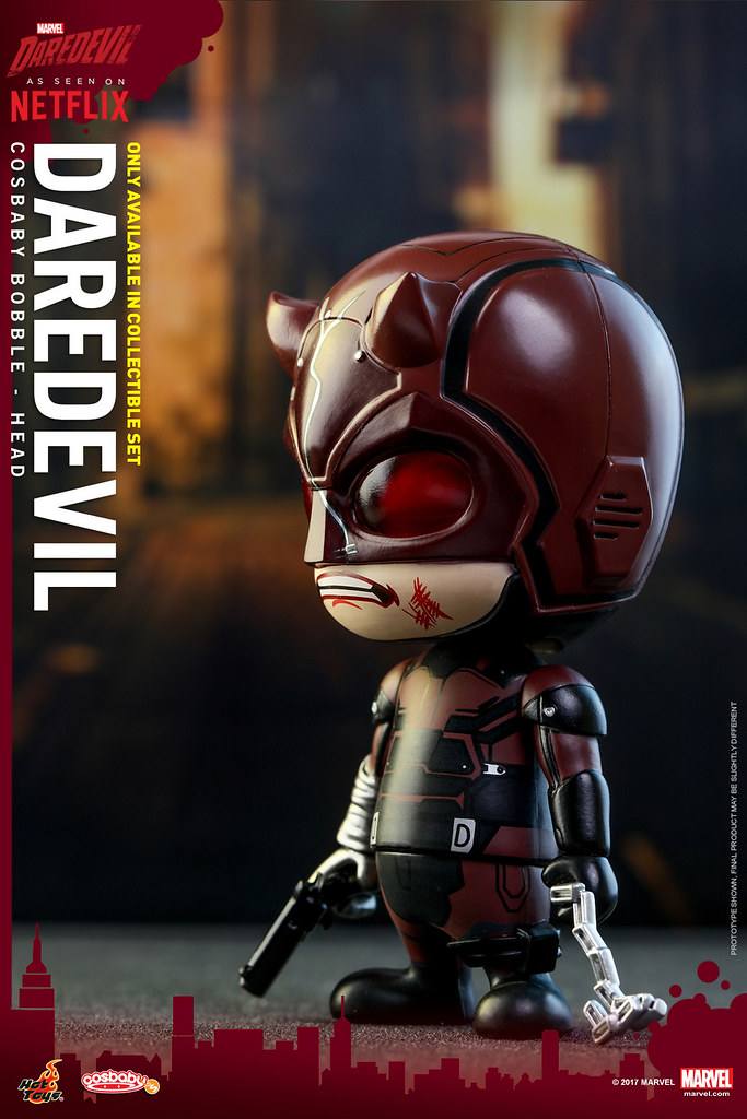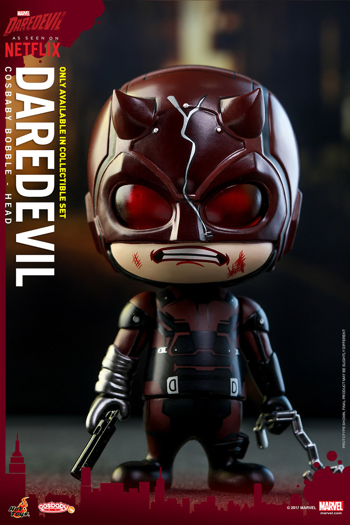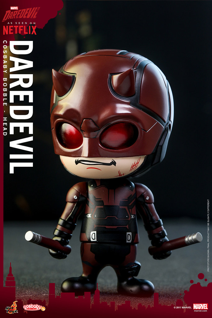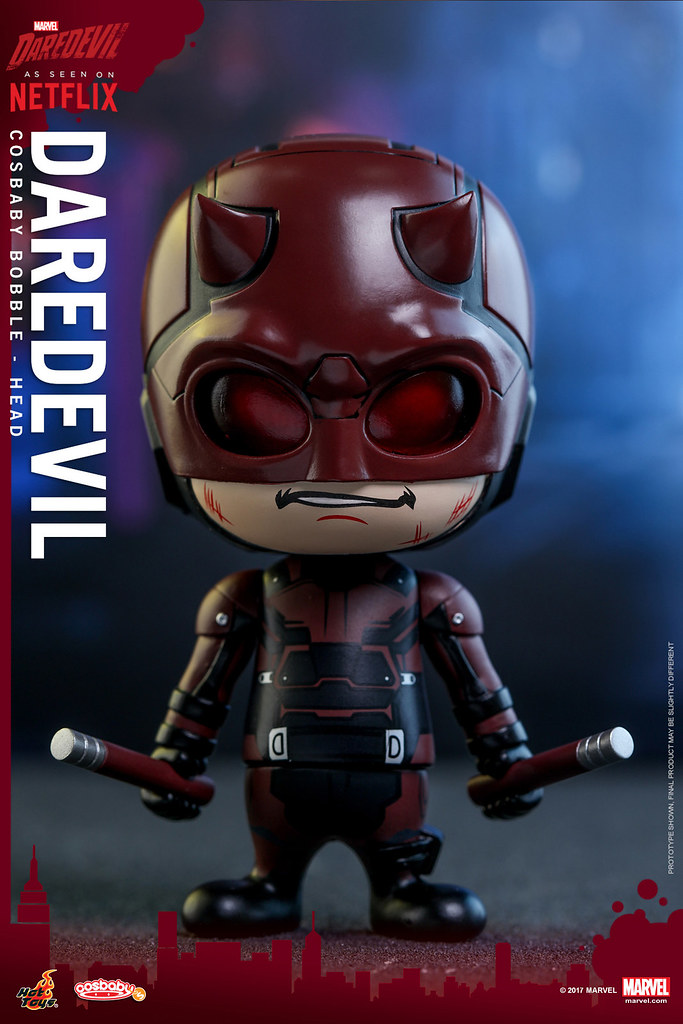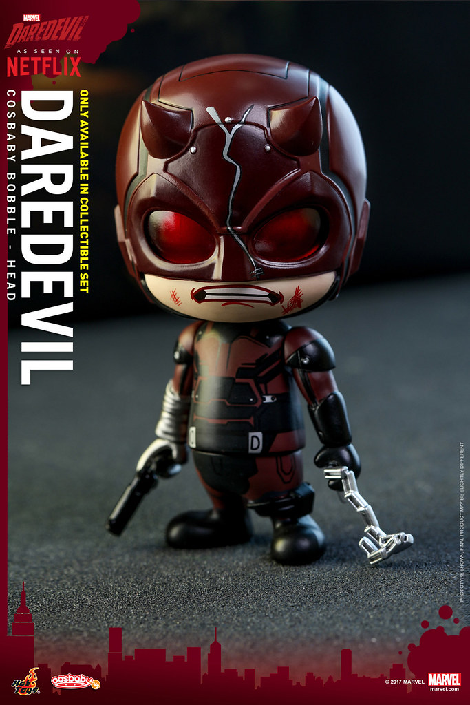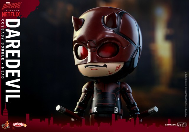 知名香港玩具品牌Hot Toys 繼日前推出了「夜魔俠」(Daredevil)1/6 比例的人偶作品之後,又將在旗下熱門Q 版玩具Cosbaby Bobble-Head 系列推出MARVEL 與Netflix 所合作打造的最新美國超級英雄影集「漫威夜魔俠」(Marvel's Daredevil)的三款Q 版人偶作品。