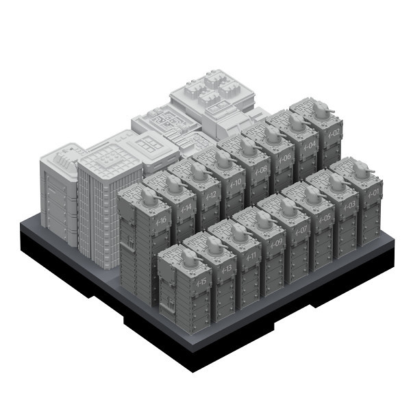 各個建築物的高度約全高40-120mm,在精巧的比例下製作出細膩的造型,不論是頂樓的物件或兵裝的刻線,全部的細節都一覽無遺。約60x60mm的底座能互相連結,讓收藏者自行配置各項建築,組成獨一無二的「第3新東京市」!而「初號機」與「第四使徒 薩基爾(新劇場版)」則是由海洋堂玩具公司擔任原型、製作,外型值得信賴,放入城市中更具臨場感!