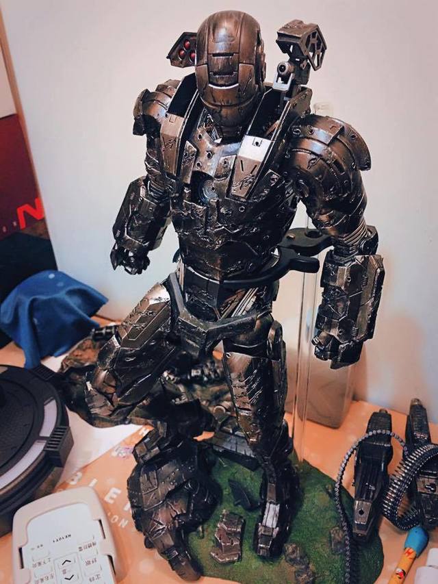 這次搭配演出的戰爭機器MK-1,是沿用我之前已經戰損鞭刷過的作品,由於老產品材質容易斷裂,最好的下場當然也是製成半雕像才能保住他光榮的戰魂。玩玩具是一件自我很開心的事情,可以改、可以不改,只要喜歡每個玩具都會帶給每一個人不一樣的感受跟意義。我心中有屬於我的重機械風,我希望跟大家分享的是我享受的過程,而不單單只是改造才是最美,有時用畫的畫出滄桑跟疲累也能讓作品原本的概念呈現,希望大家喜歡這次的分享。