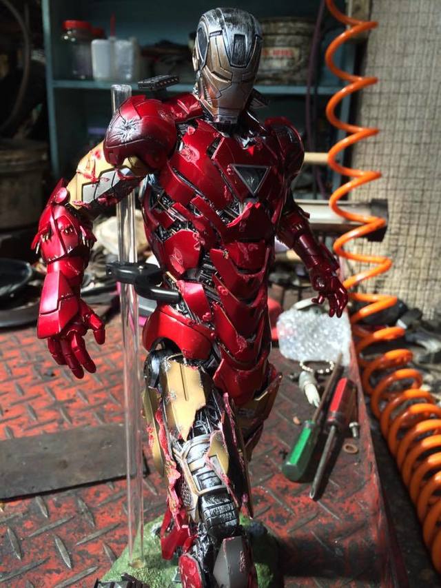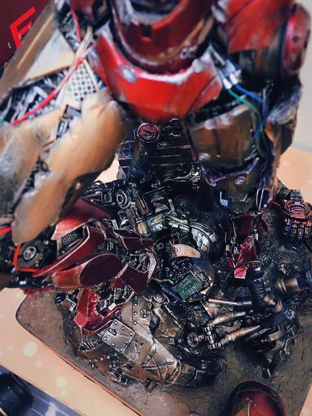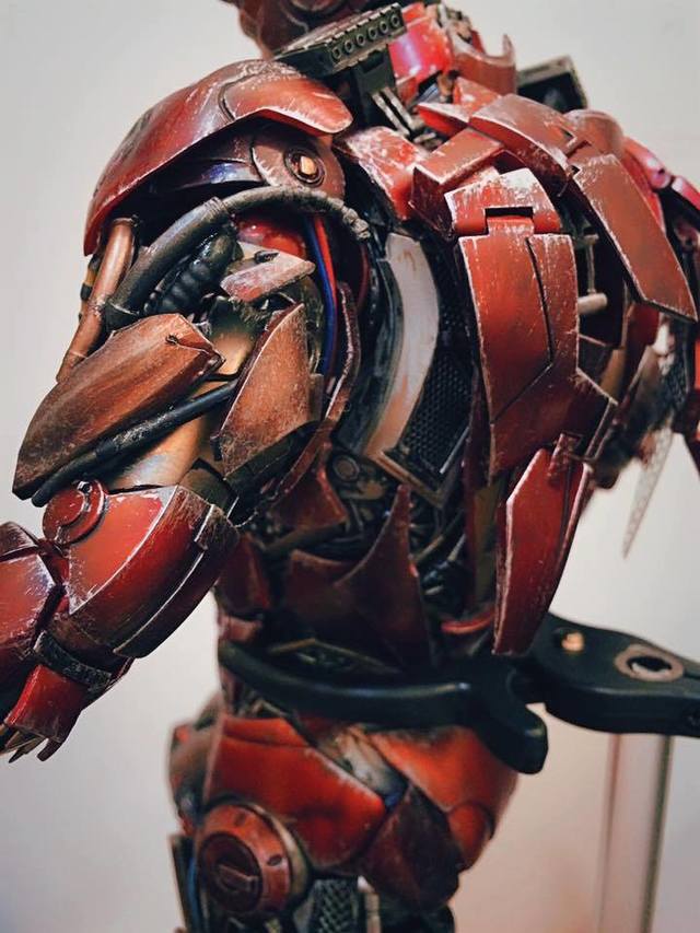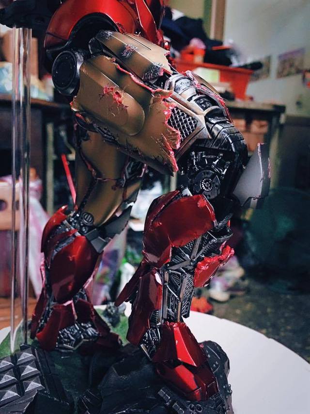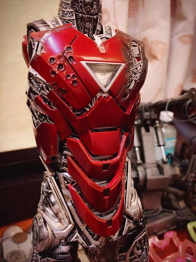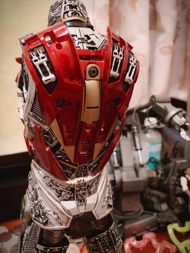 在鬼谷的細節裡,總是可以很好發揮在列甲和體作品上,但是在多的列甲改造看久了也就會感到一絲絲失落,想要再多做一些變化,讓合體狀態看起來更豐富更有邏輯性。這一次我把MK-6 結合鬼骨與奧創MK-1,讓重機械裡的電子線路與油管殘露在破裂的戰甲會更顯出鋼鐵人本體的壯碩與耐戰程度。