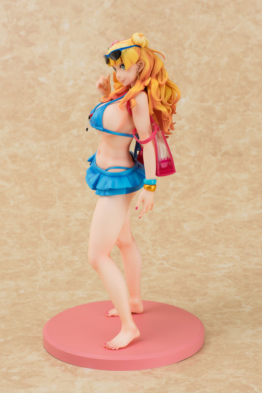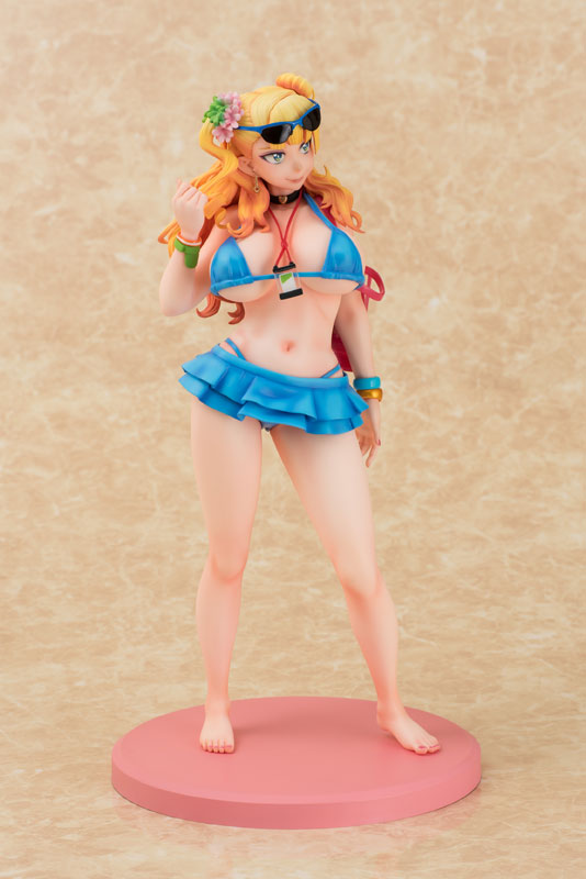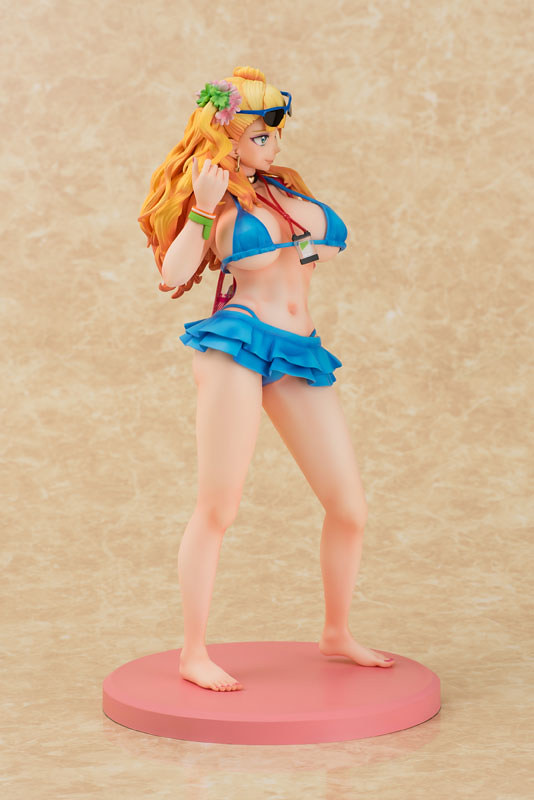 「泳裝的辣妹子」以1/6比例大魄力呈現,精緻的頭髮造型還原了原作中的畫風,將一絲一縷的捲髮刻劃出來。在1/6比例下,豐滿的胸部與臀部有著壓倒性的存在感,自然的形狀讓人能感受到柔軟的質感,身材曲線的雕塑也相當美,肋骨的凹陷、腹肌的線條全都一覽無遺!身上的配件製作也不馬虎,髮飾、太陽眼鏡、票夾等物件都很真實,特別是防水包中的各式小道具也完全重現!