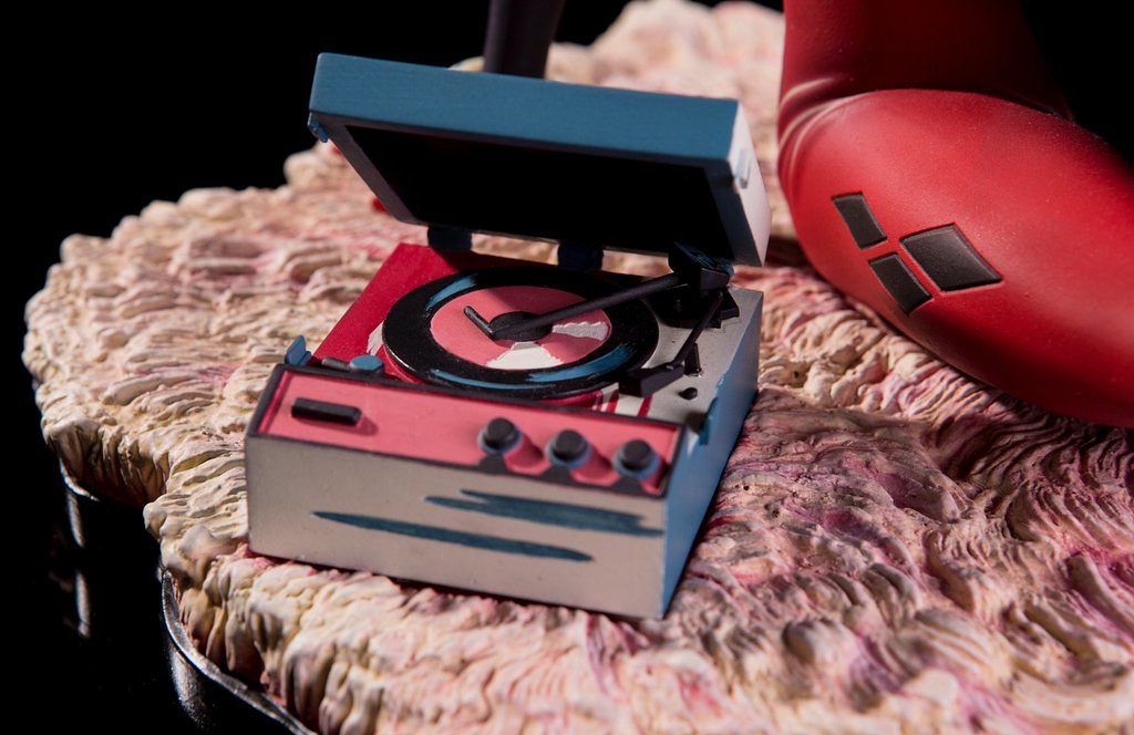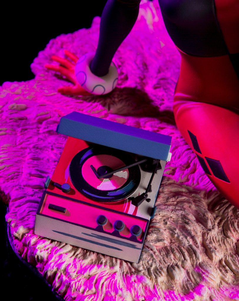 而這次MONDO 工作室所推出小丑女「哈莉.奎茵」的雕像有分普通版、限定版兩種販售方式,有別於普通版本的雕像作品,限定版(Mondo Exclusive)的作品有額外附上七張小丑為封面的黑膠唱片配件,讓各位玩具人可以更完整的呈現出海報的模樣。