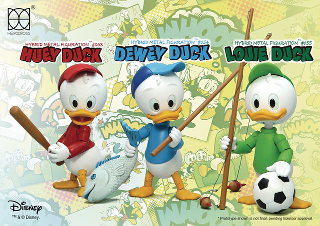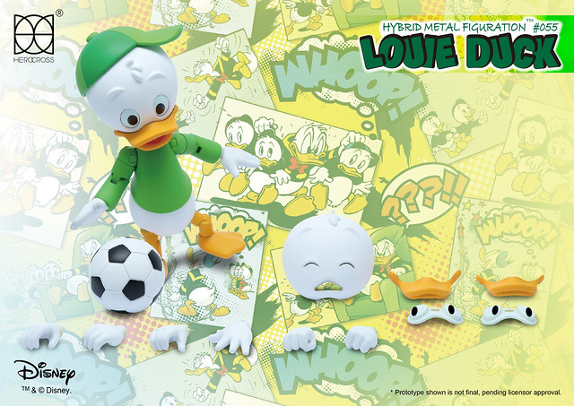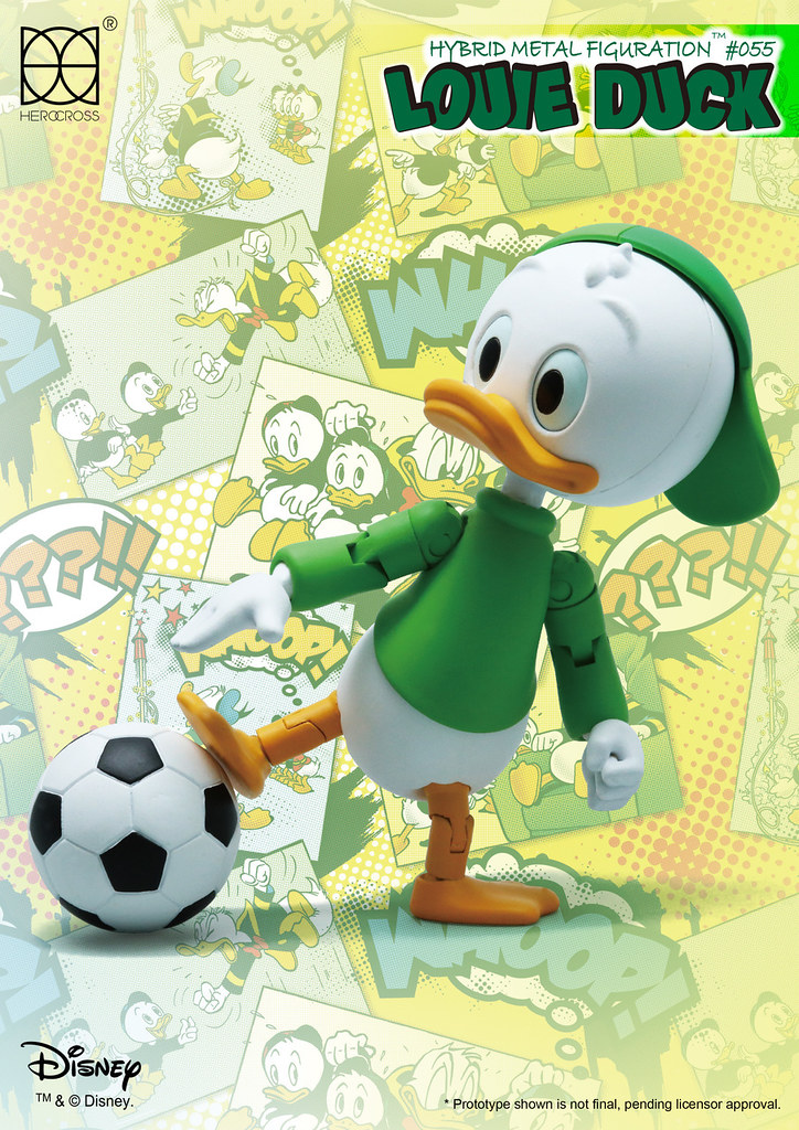 繼推出了大哥鴨「輝兒」(Huey Duck)與聰明鴨「杜兒」(Dewey Duck)的合金作品之後,知名合金玩具品牌HEROCROSS 公司這次還將在旗下HMF 系列(Hybrid Metal Figuration)推出老三乖乖鴨「路兒」(Louie Duck)的可愛合金作品。
