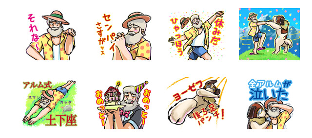 《阿爾卑斯山的少女?輕浮爺爺》(アルプスの少女ハイジ?ちゃらおんじ),原本是日本富士電視台的情報節目『#ハイ_ポール』中的惡搞迷你短片,藉由復古的動畫風格,將原本經典動畫《阿爾卑斯山的少女》(小天使)登場的爺爺(阿蒙治),變成了輕浮又隨便的大叔。 懷舊的動畫搭配上超惡搞內容,再加上原本頑固嚴肅的老爺爺變成了超輕浮的隨便角色,超高程度的反差萌瞬間獲得大好評,更讓LINE貼圖成為一系列的超人氣作品。
