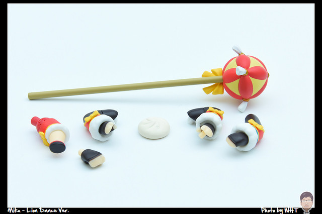 舞獅的頭部要當成帽子裝上黏土人前,記得將嘴巴那個部分拆下