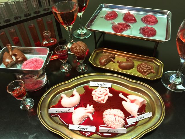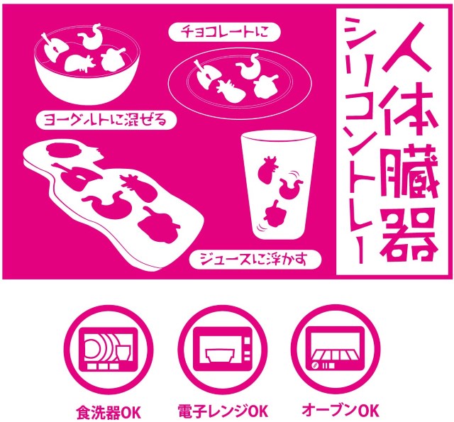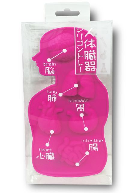 這次由日本知名的搞怪商品雜貨店比利治玩家(VILLAGE VANGUARD)所發行的【人體器官巧克力模具】(人体臓器シリコントレー),模具採用人體造形設計,並加入了人體各種重要器官:腦、肺、腸、心臟與胃造型的格子,每格都細緻地呈現了縐折、血管紋路...等,讓你做出各種逼真效果十足的甜點! 而且還兼具保健教育的謎之機能(?)
