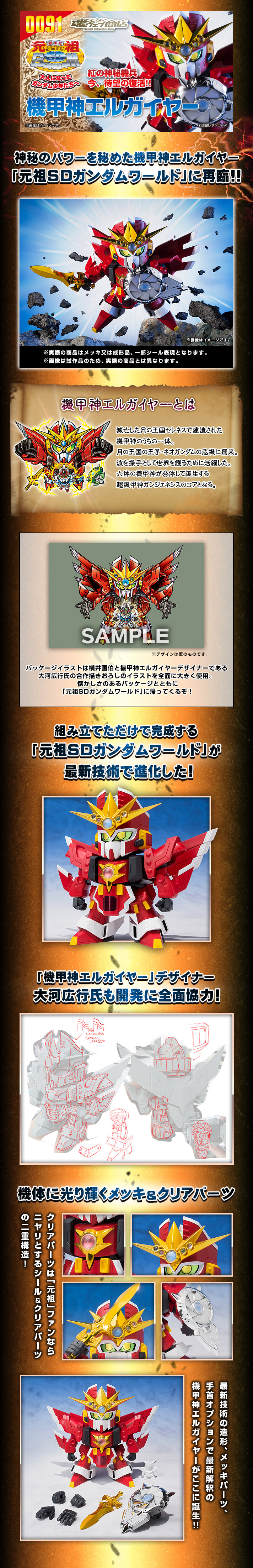 當場於《SD鋼彈外傳 機甲神傳說》動畫裡面紅色神秘機兵「機甲神艾爾蓋亞」,這次將以SD鋼彈組裝模型系列"復活"登場了啊!故事裡的名稱「艾爾蓋亞(エルガイヤー)」神秘機兵是以重戰機主役機體「艾爾加(エルガイム)」與六神合體中「蓋亞(ガイヤー)」兩個名字所組成的,擔任著超機甲神的"核心位置",希望廠商之後可以持續推出"六位"的機甲神成員啊!