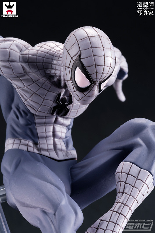 將蜘蛛人利用蜘蛛絲在大廈間擺盪飛越的一瞬間,凝縮為充滿躍動感的精彩造型,不論是特徵的青少年體型、經典的蛛網圖樣服裝皆忠實地完全刻畫出來,並且搭配上變形視覺效果的大廈地台,塑造出更加具有張力的精彩作品;本作品將同步推出彩色與黑白配色版,兩種款式呈現出截然不同的戲劇化效果,各位喜愛蜘蛛人的玩具人,千萬別錯過這款精彩作品喔!
