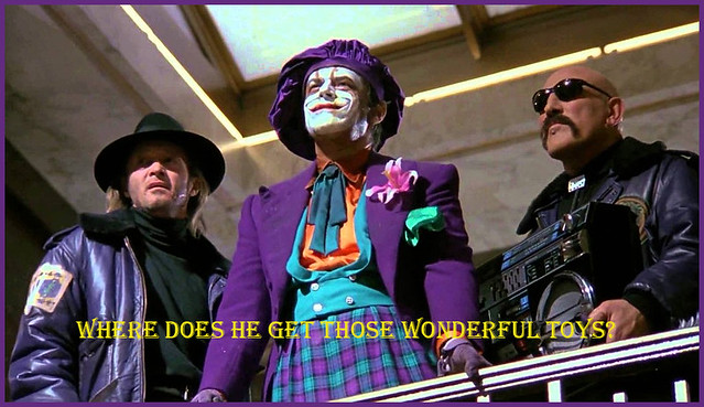 當小丑率領惡棍闖到蝙蝠洞,看到一堆設備說到"all of your wonderful toys",改編自蝙蝠俠1989年電影,小丑看到蝙蝠俠用自己的設備救出女主角,藉此讚嘆所講的經典台詞"Where does he get those wonderful toys”