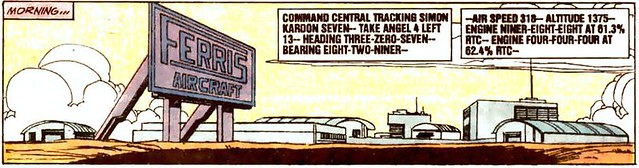 ● Ferris Air:綠燈俠哈爾曾任職的航空公司,注意旁邊的標語”Is it a bird? Is it a plane? Yep, it’s a plane”。是改編自1952年超人廣播劇開始才有的經典名言”It’s a bird. it’s a plane. NO! it’s Superman.”