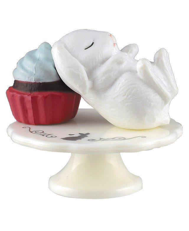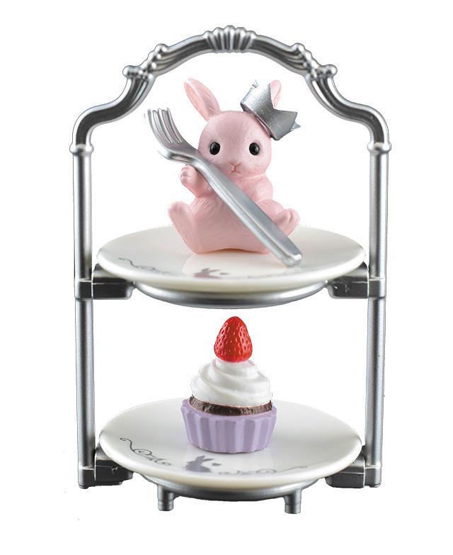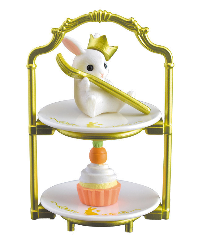 這次所要推出的第二彈「兔兔洋菓子本舗」作品將會推出六個款式,包括:金色蛋糕架與米色兔子、銀色蛋糕架與粉紅色兔子、銅色茶具組與米色兔子、藍色茶具組與灰色兔子、杯子蛋糕與橘黃色兔子、巧克力杯子蛋糕與白色兔子,喜歡可愛小兔子的玩具人別錯過囉。