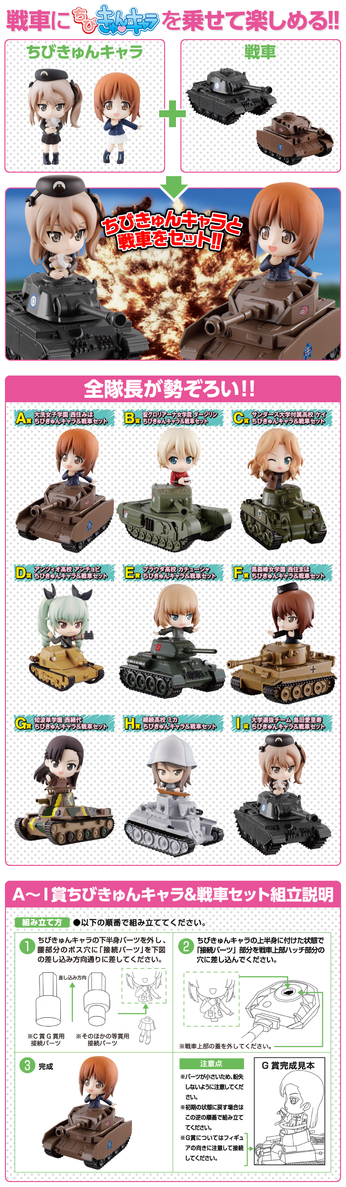 「一番賞Premium ~戰車道是少女的嗜好!~ 」以劇中少女們與戰車的Q版造型為主題,其中A~I獎更是各校戰車隊隊長與她們座車的立體作品,分別有: