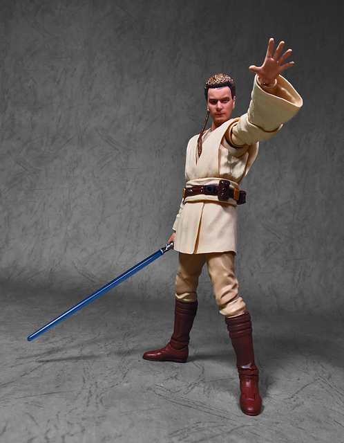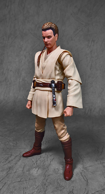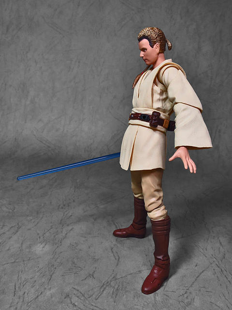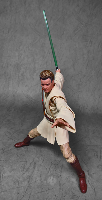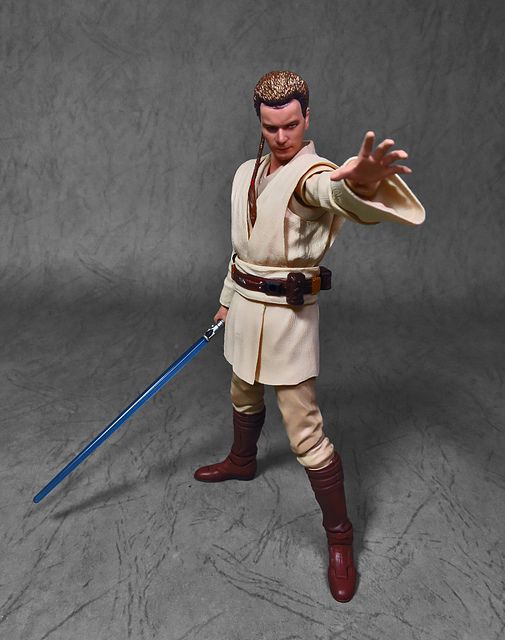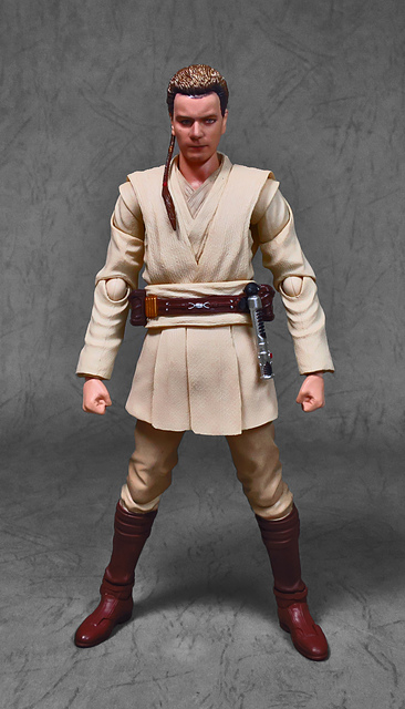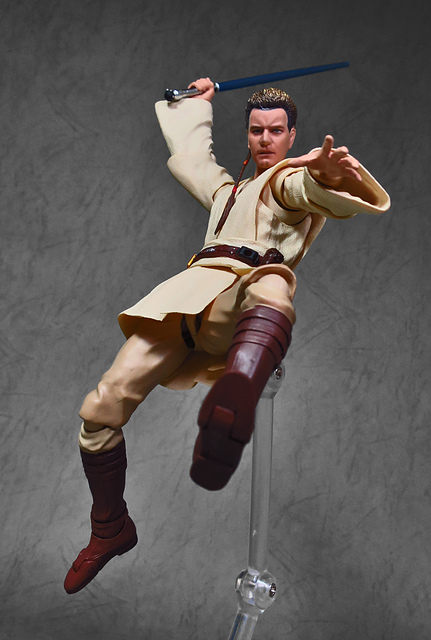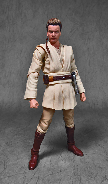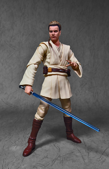 在體驗過「魂數位上色技術」的強大後,任誰都會迫不及待想要入手下一個,這一次把我給用力拉下的,正是潛力無窮的S.H.Figuarts星戰火坑,而作為初體驗,我選擇了這位對我來說意義深遠的EP1辮子小王。十八年前,星戰首部曲上映,從未接觸過四五六部曲的我也踏了戲院,當時年幼的我深深地被最後的光劍決鬥所吸引(老粉絲請原諒當年膚淺的我),而後一路按著故事的時間軸補完了六部曲,再走入戲院跟進《原力覺醒》,但無論如何,初次的震撼就像青澀的初戀一樣,依舊在我心中留下了難以抹去的痕跡,除了現實因素,歐比王這位絕地大師在前三部曲中,也佔了相當重要的戲份,不僅目睹了銀河帝國的崛起,同時也眼睜睜地看著徒弟兼好友的安納金墮入黑暗,可謂星戰磅礡史詩的的歷史見證者。