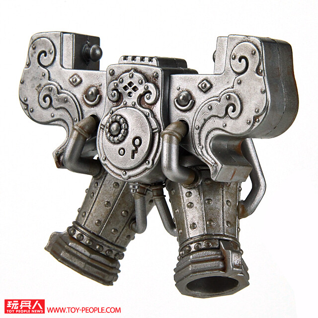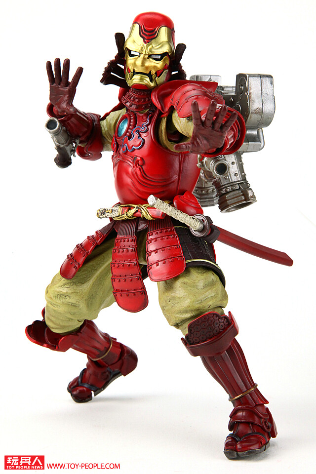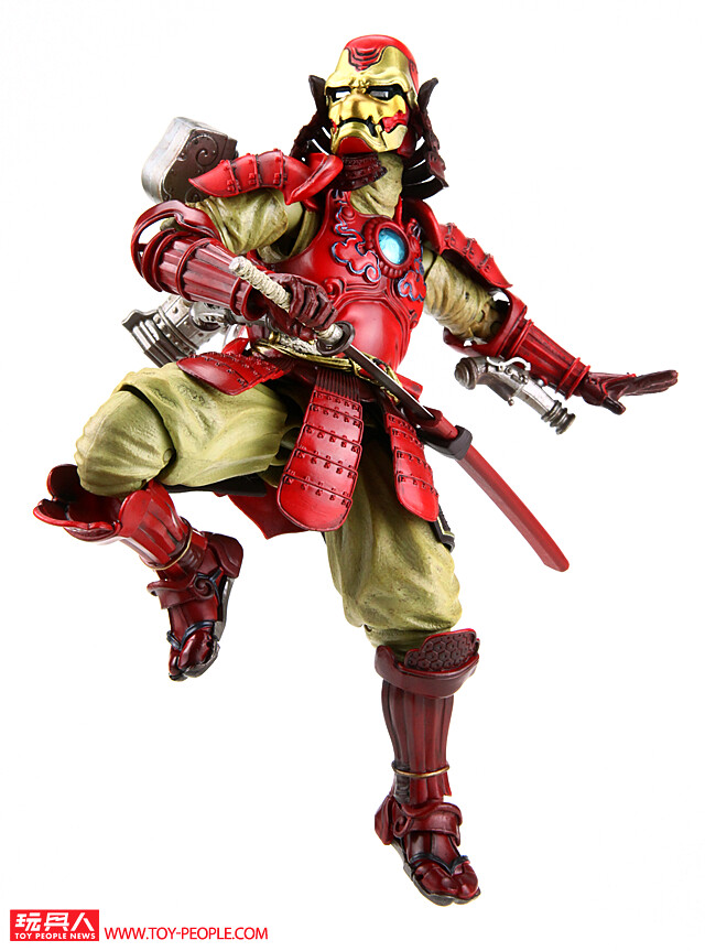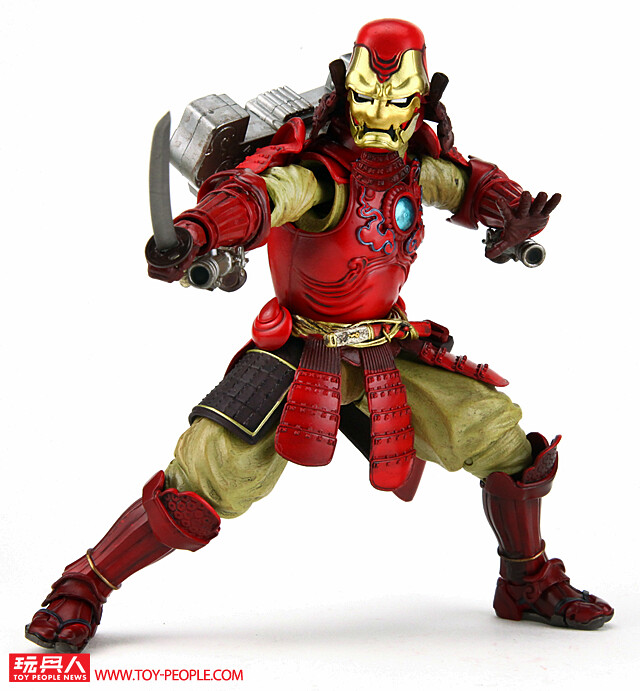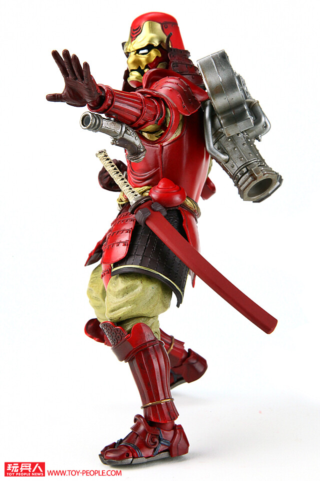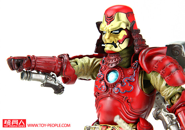 ▼ 鋼鐵人代表性武裝「掌心脈衝雷射」,也依據了戰國時代的歷史背景而更改為了「單筒型火繩槍」,藉由當時最先進的武器來解釋鋼鐵人的設計,科技上的落差反而轉化為一種超酷的風格!