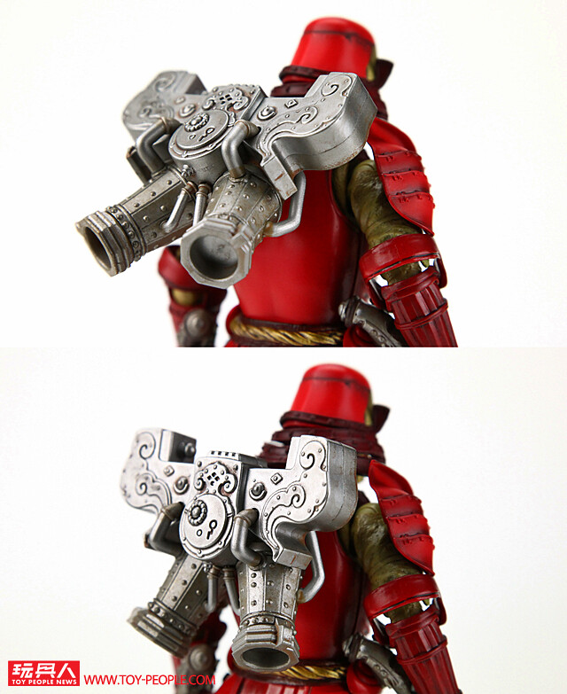▼ 另外,這一款作品還導入了手甲能夠轉動的設計,能夠自由改變火繩槍的位置,讓可動性不受到影響。 這一款作品為了提升可動性可說是在許多地方都相當用心啊~